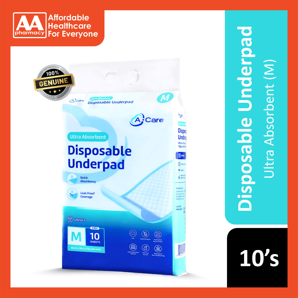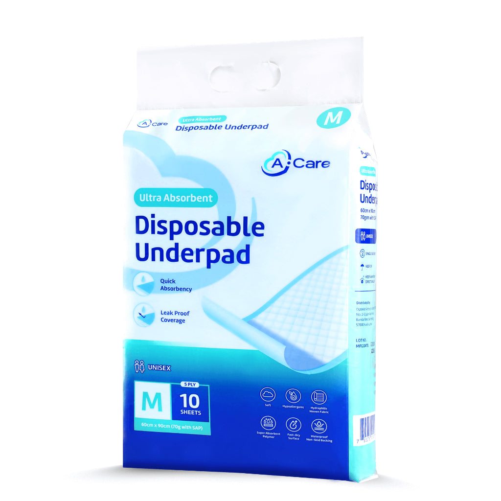 A-Care Ultra Absorbent Disposable Underpad Size M 60x90cm (10's)