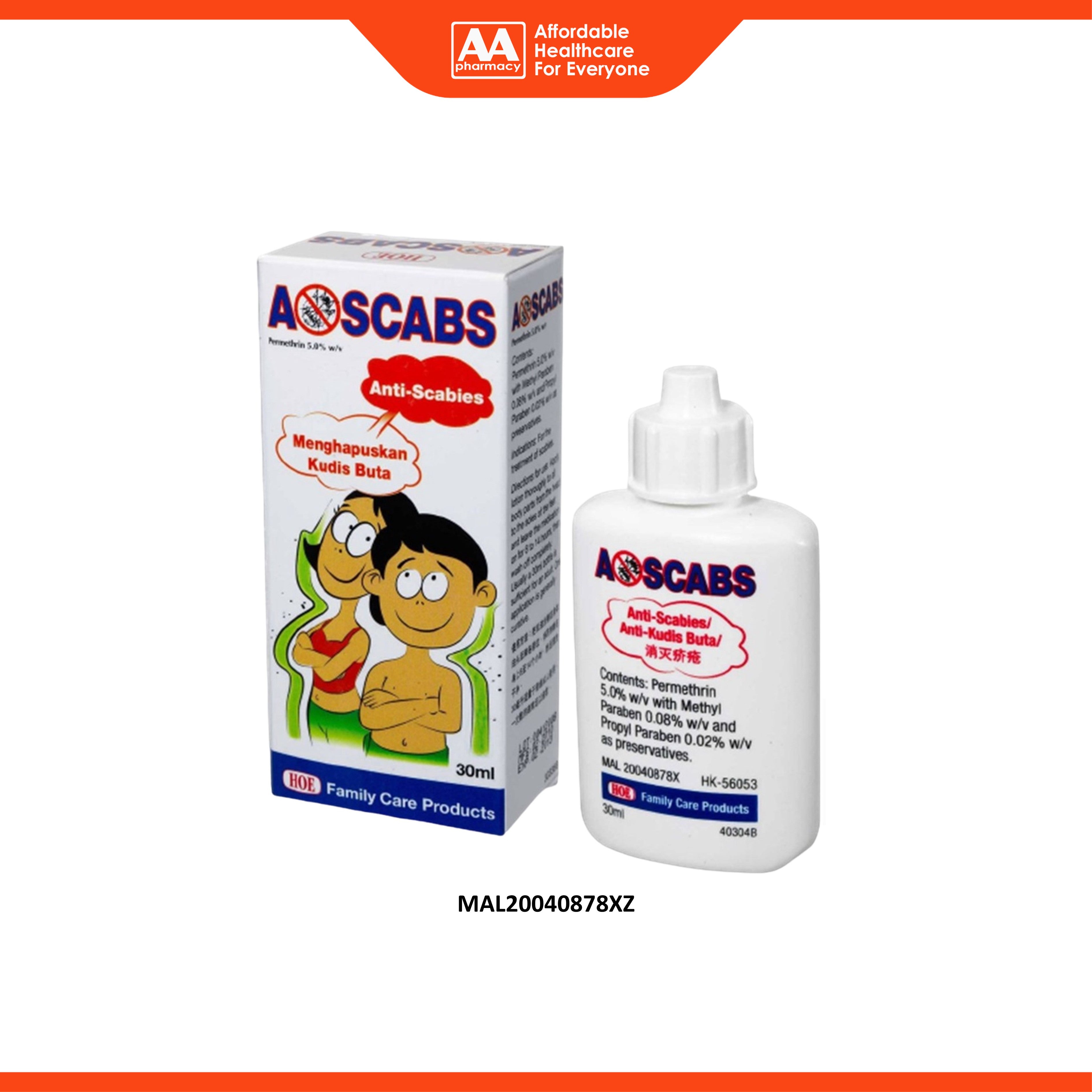A-Scabs (Permethrin 5% w/v) Lotion 30mL (For Treatment of Scabies)