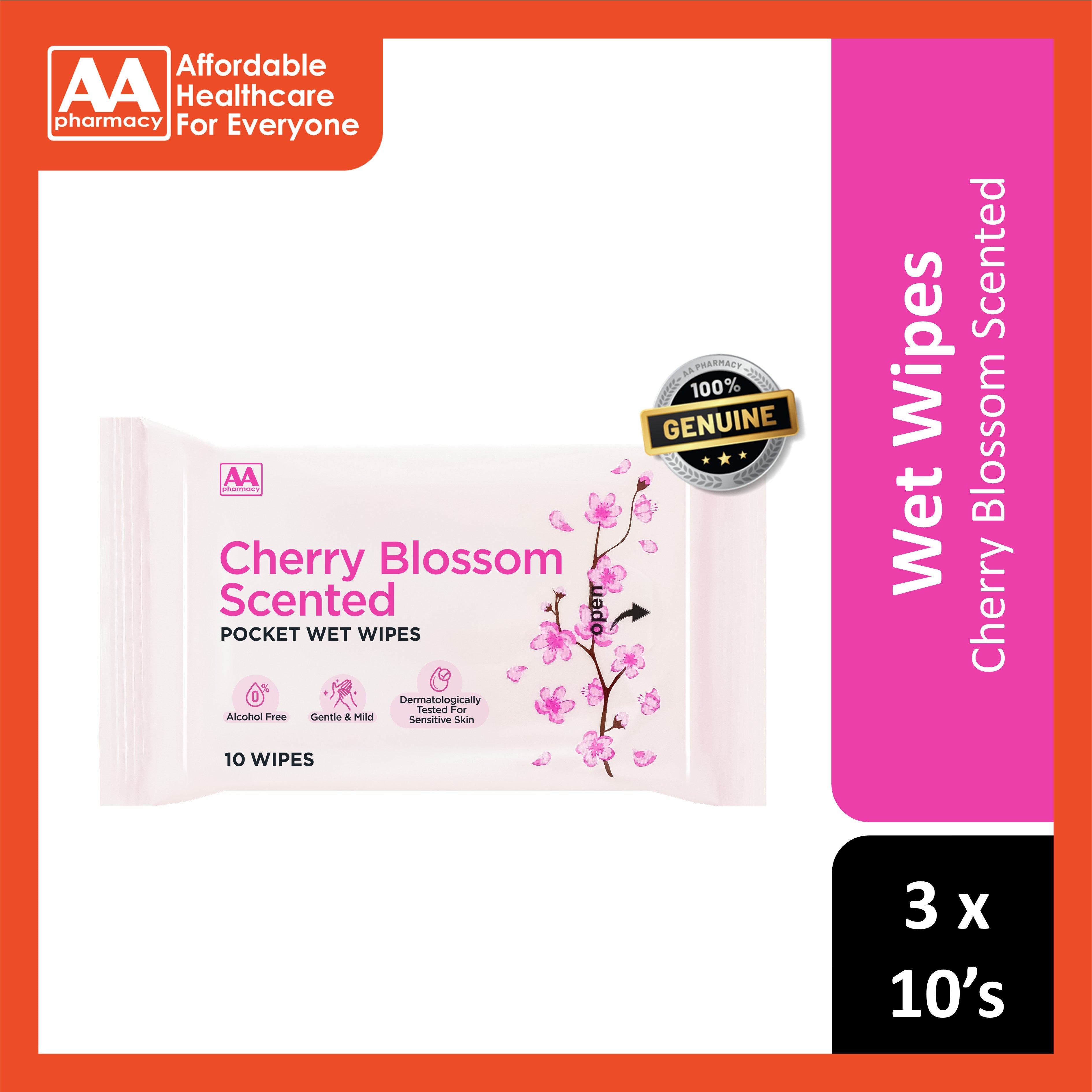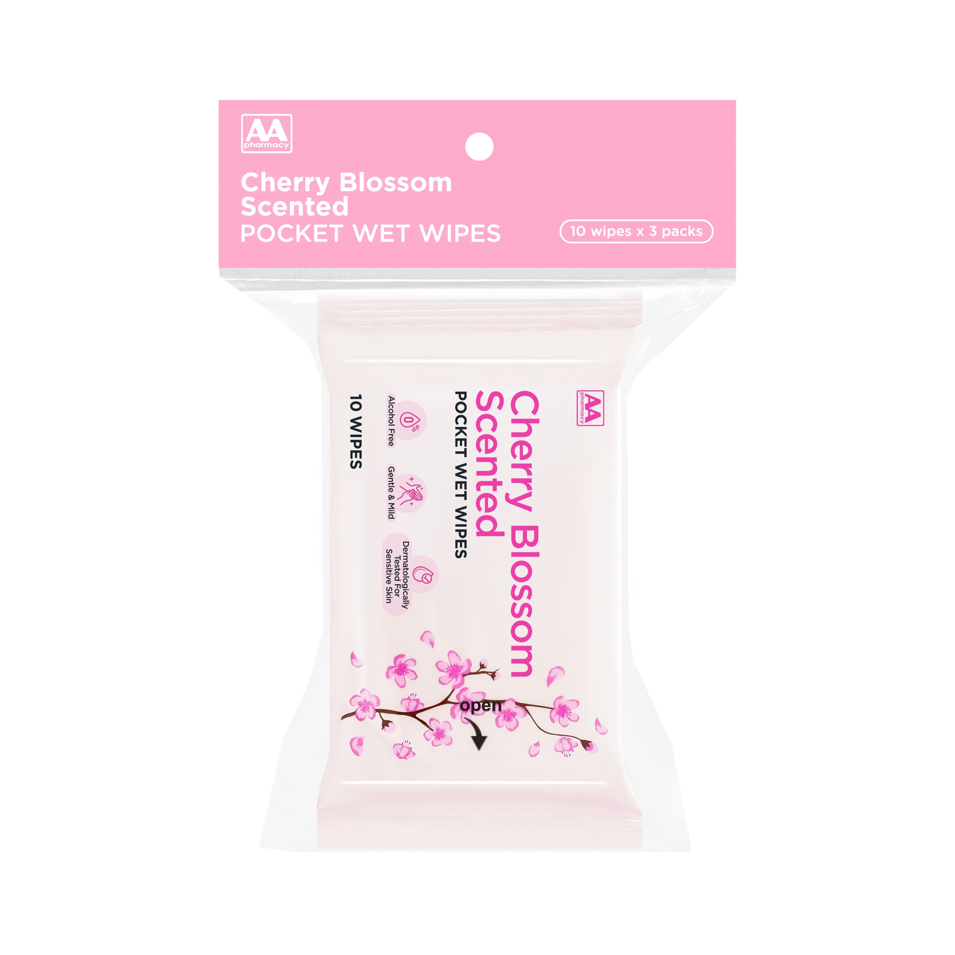 AA Cherry Blossom Scented Pocket Wet Wipes 3x10's