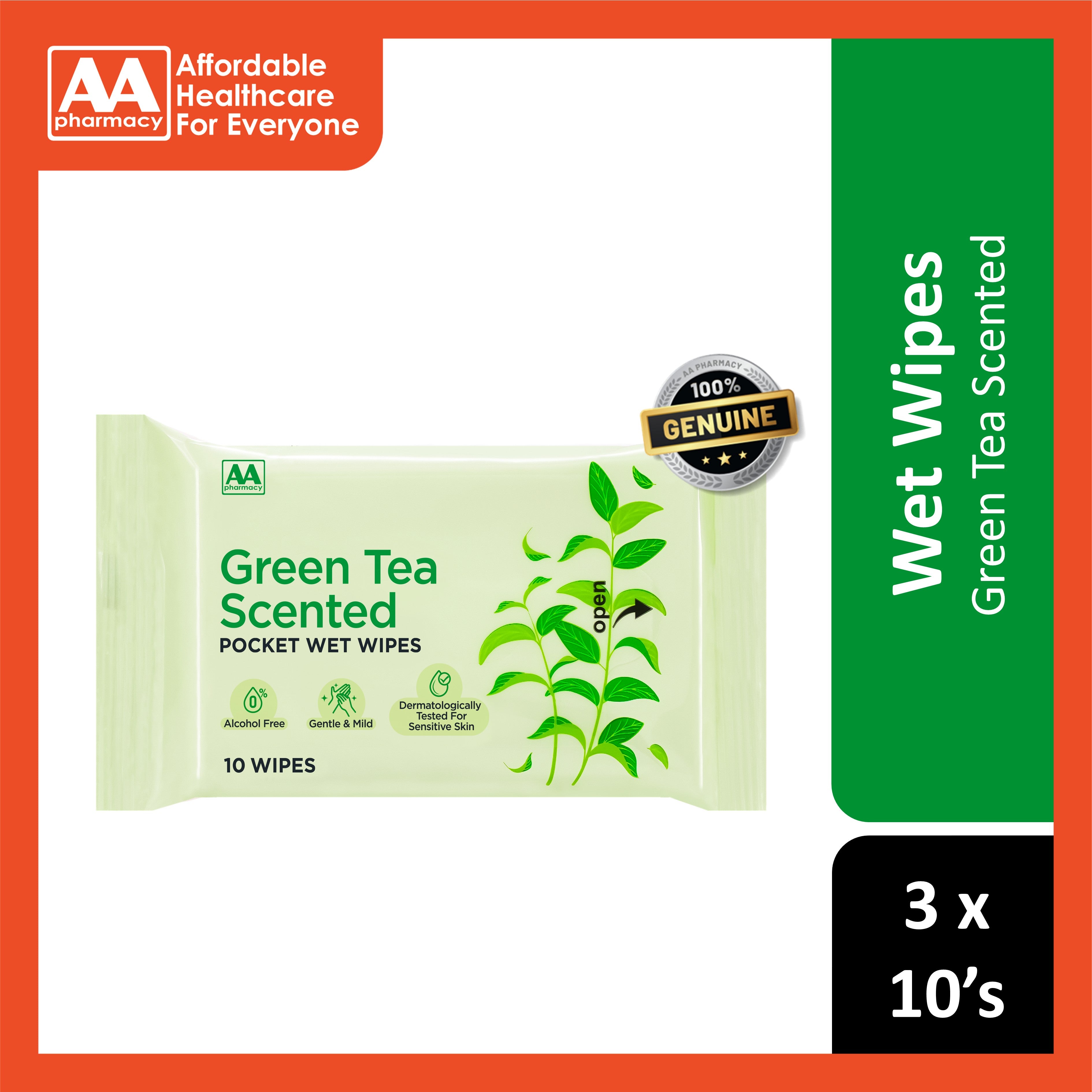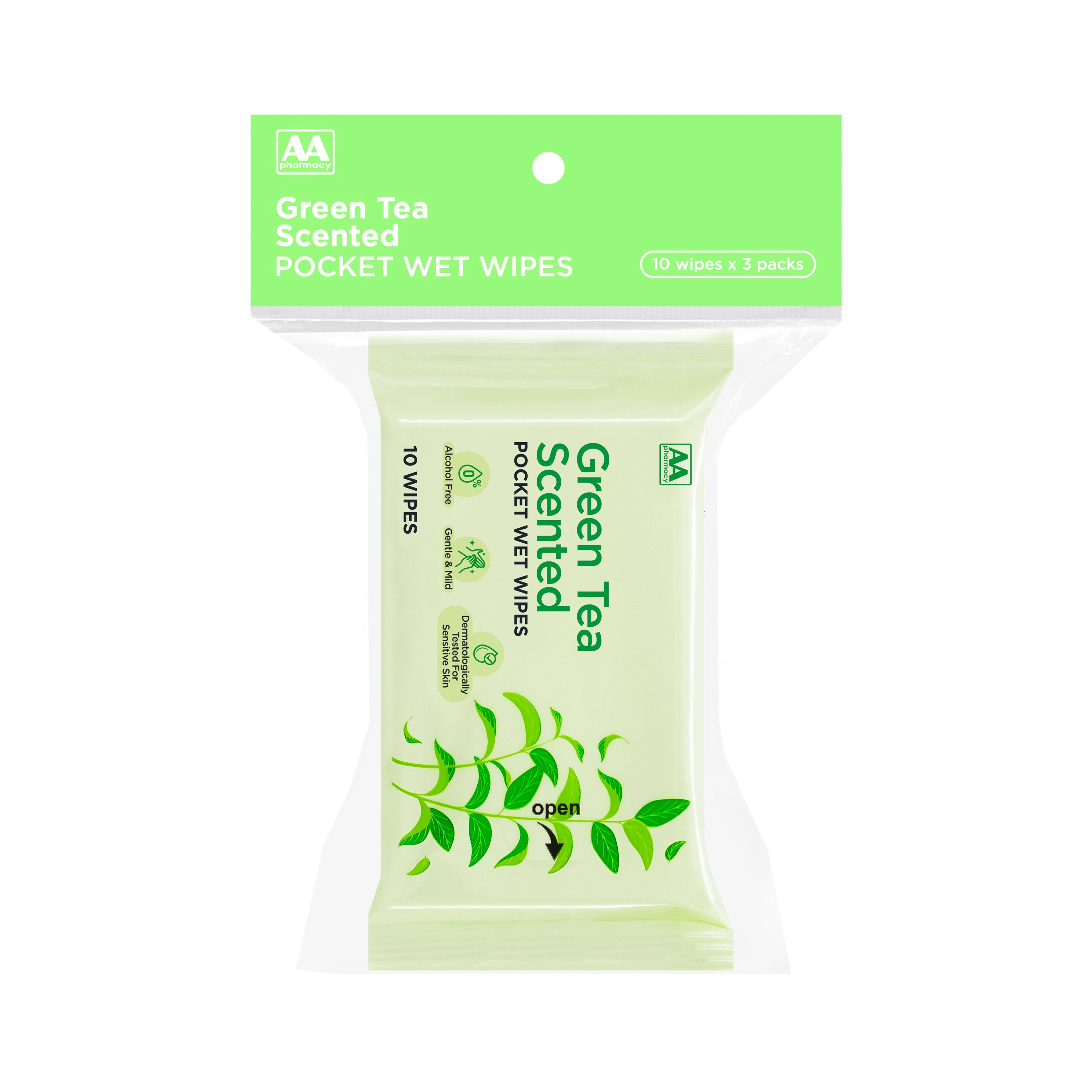 AA Green Tea Scented Pocket Wet Wipes 3x10's