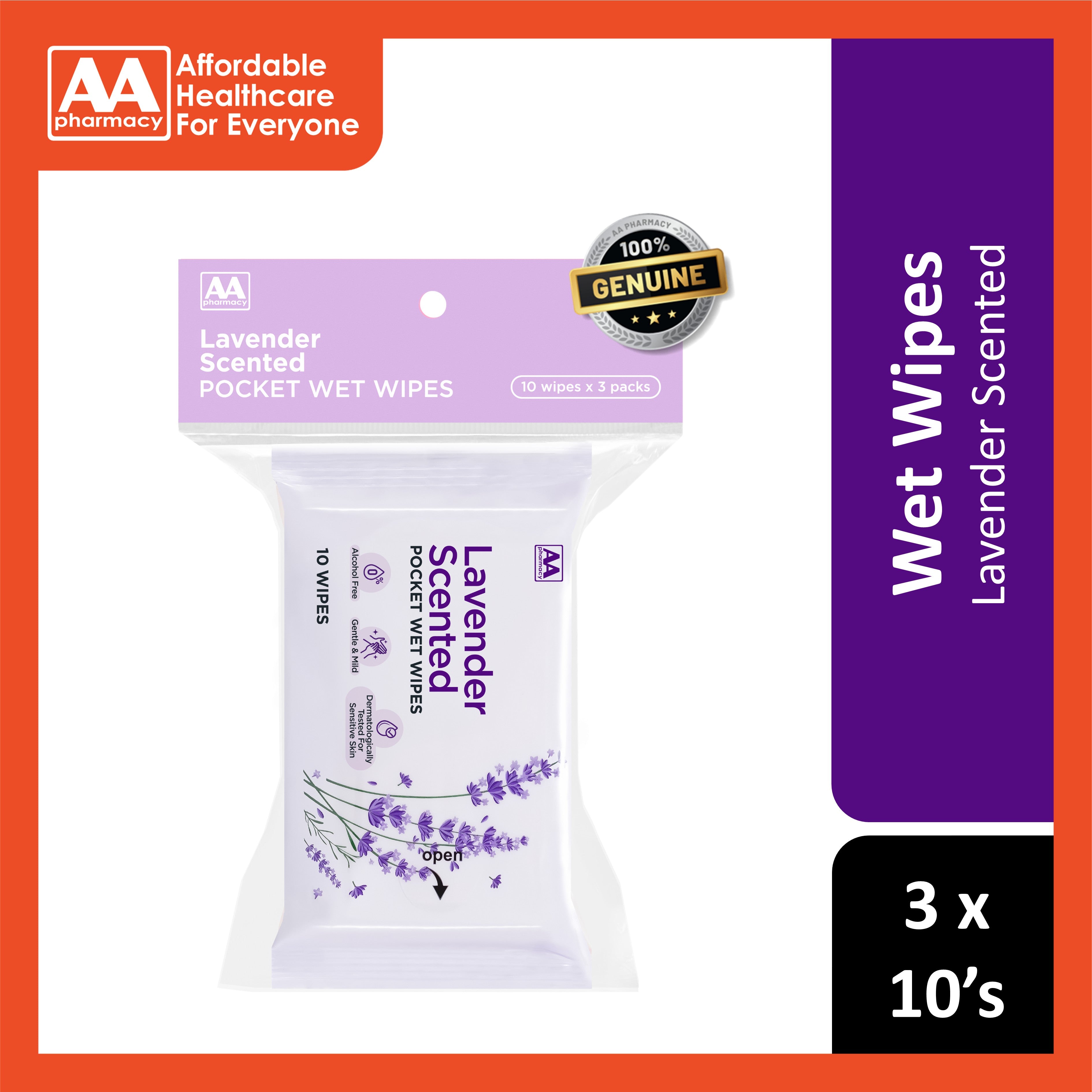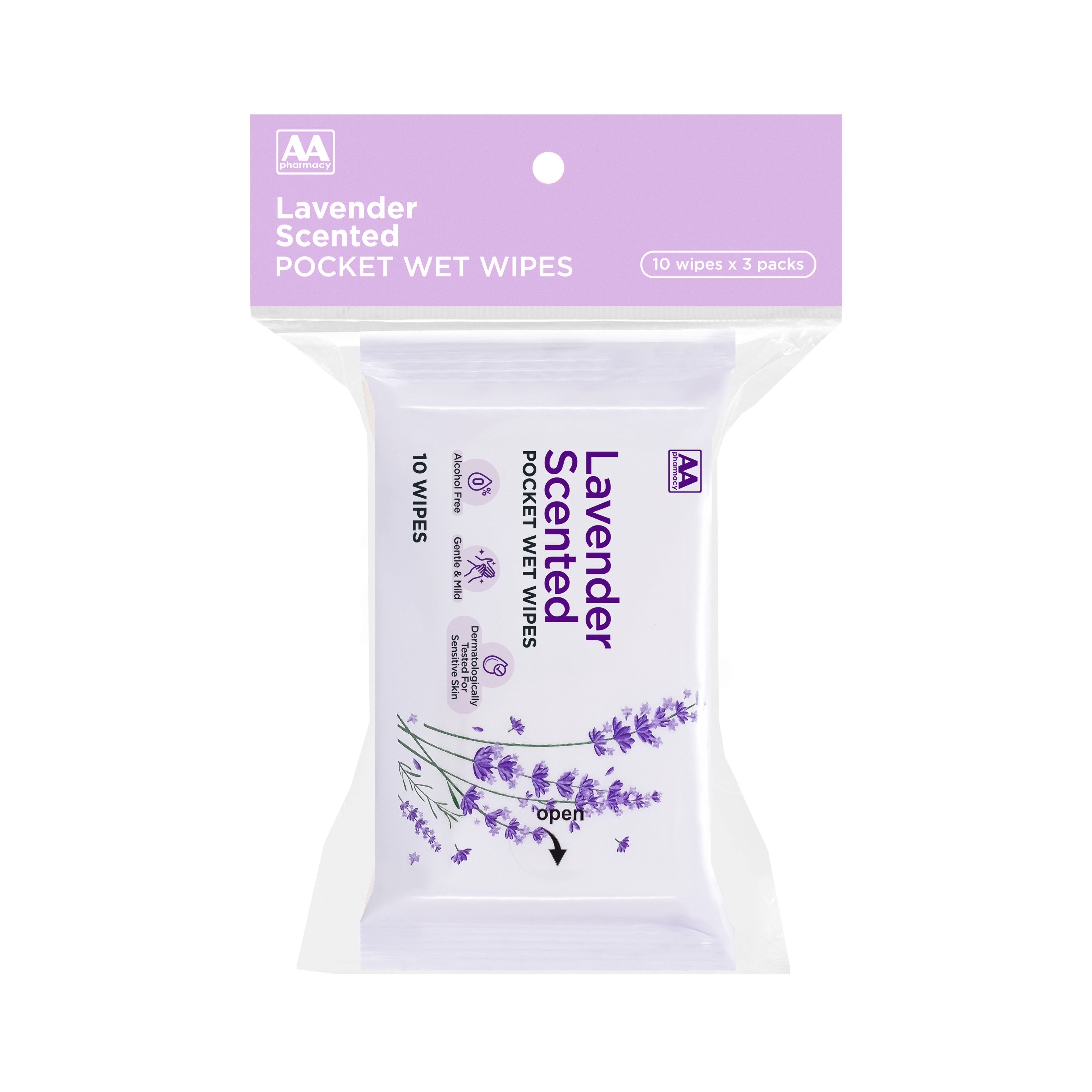 AA Lavender Scented Pocket Wet Wipes 3x10's