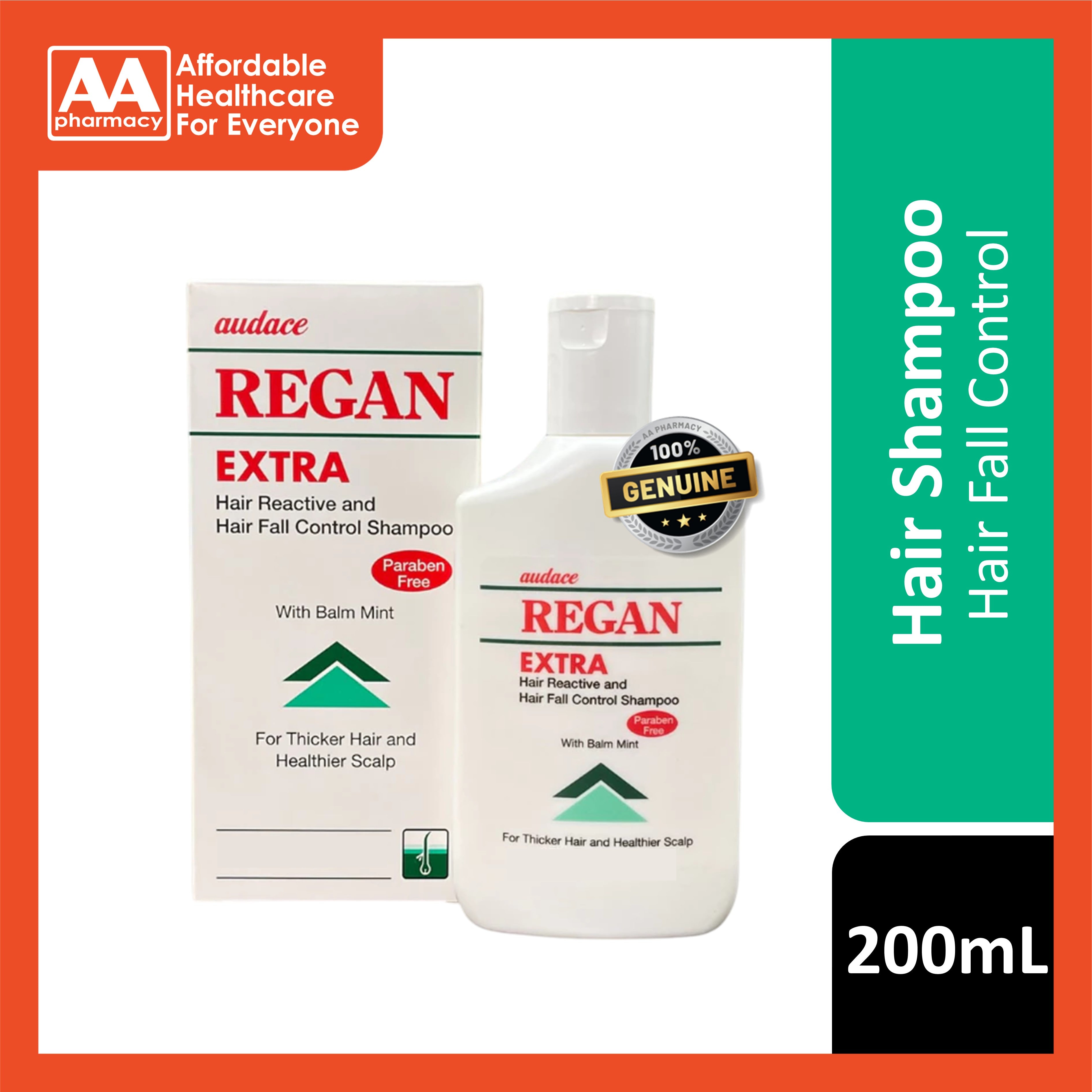 Audace Regan Extra Hair Reactive And Hair Fall Control Shampoo 200mL (With Balm Mint)