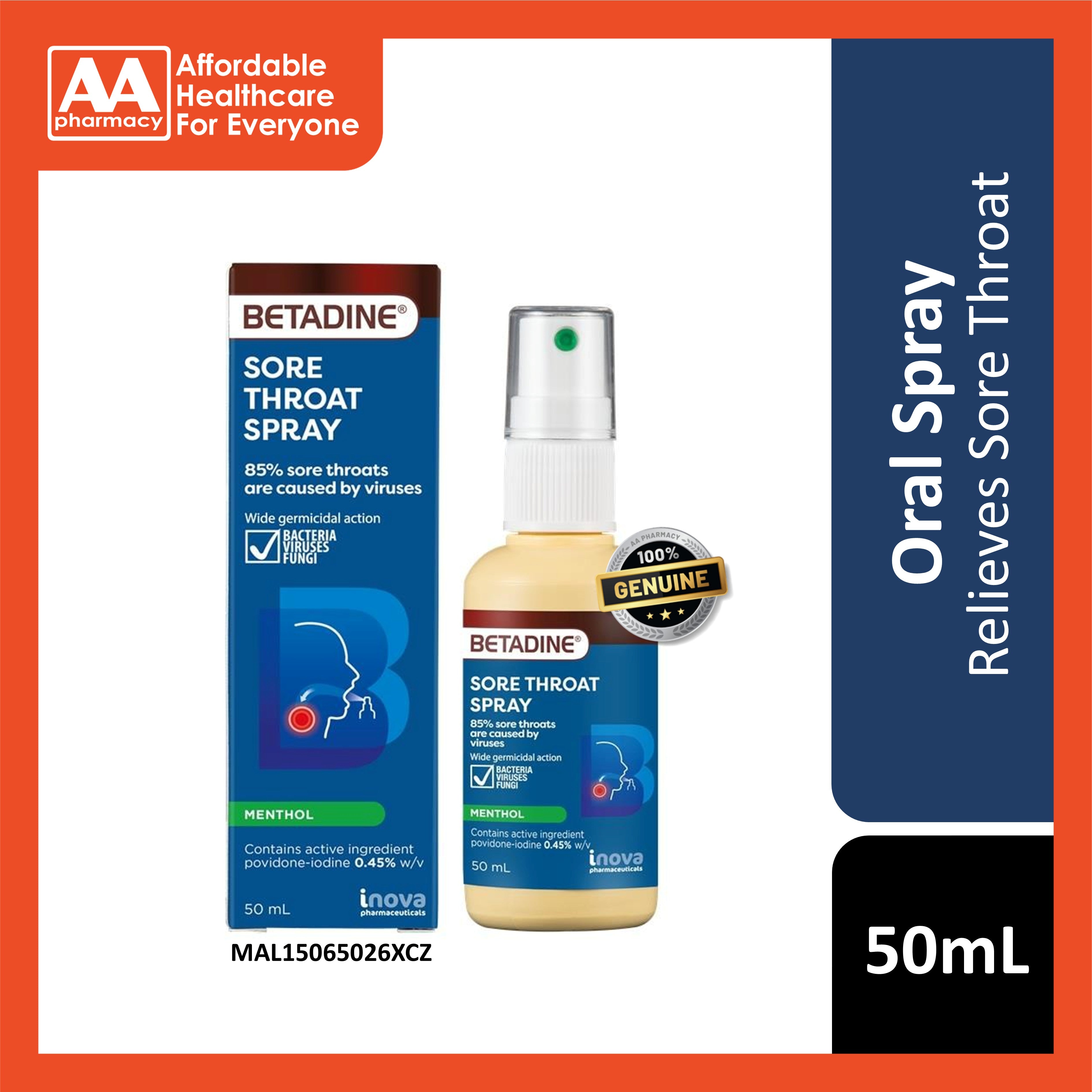 Betadine Sore Throat Spray contains a medicine called Povidone-Iodine . Povidone-Iodine has a broad application in medicine as an antiseptic and disinfectant for various purposes.