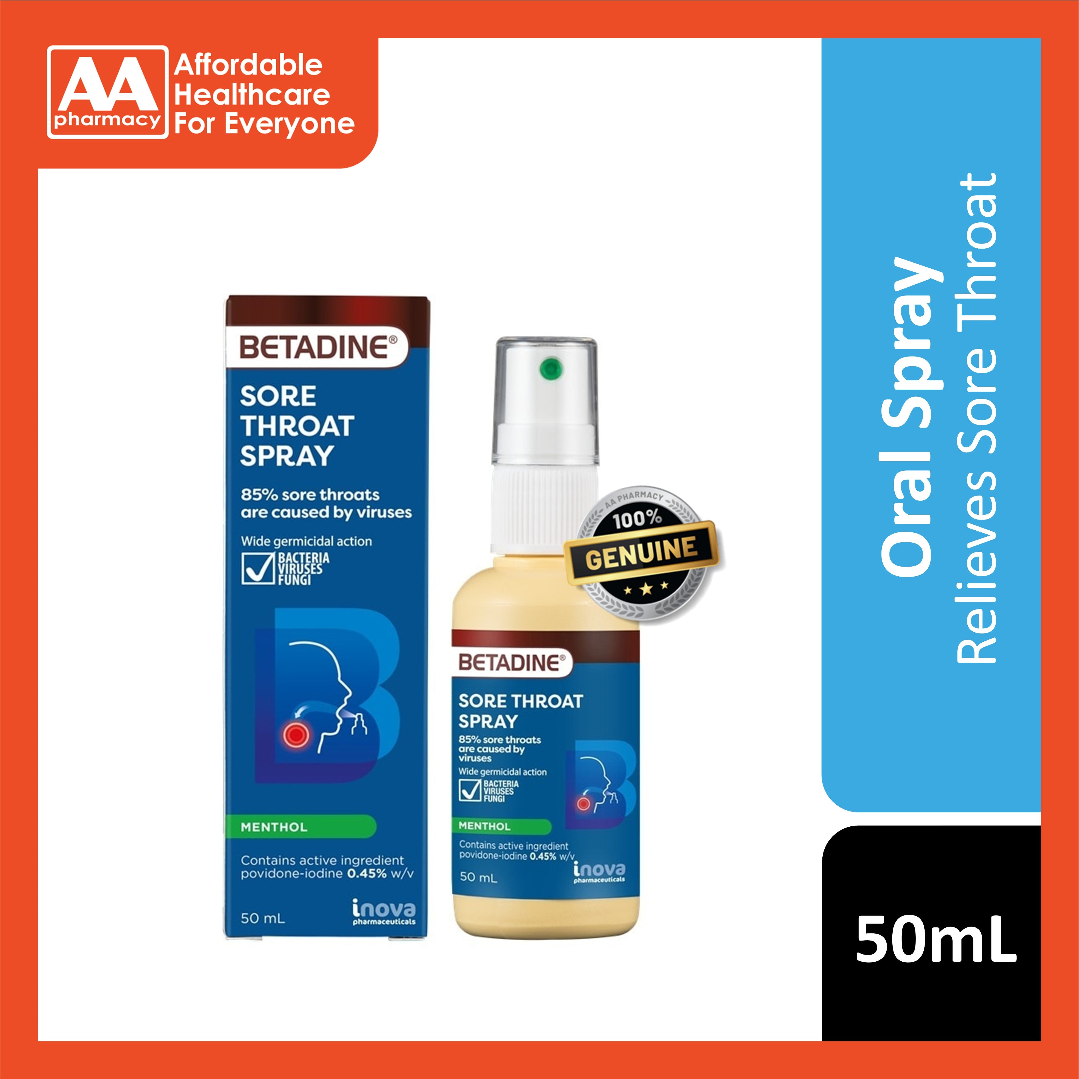 Betadine Sore Throat Spray contains a medicine called Povidone-Iodine 0.45% w/v. Povidone-Iodine has a broad application in medicine as an antiseptic and disinfectant for various purposes.