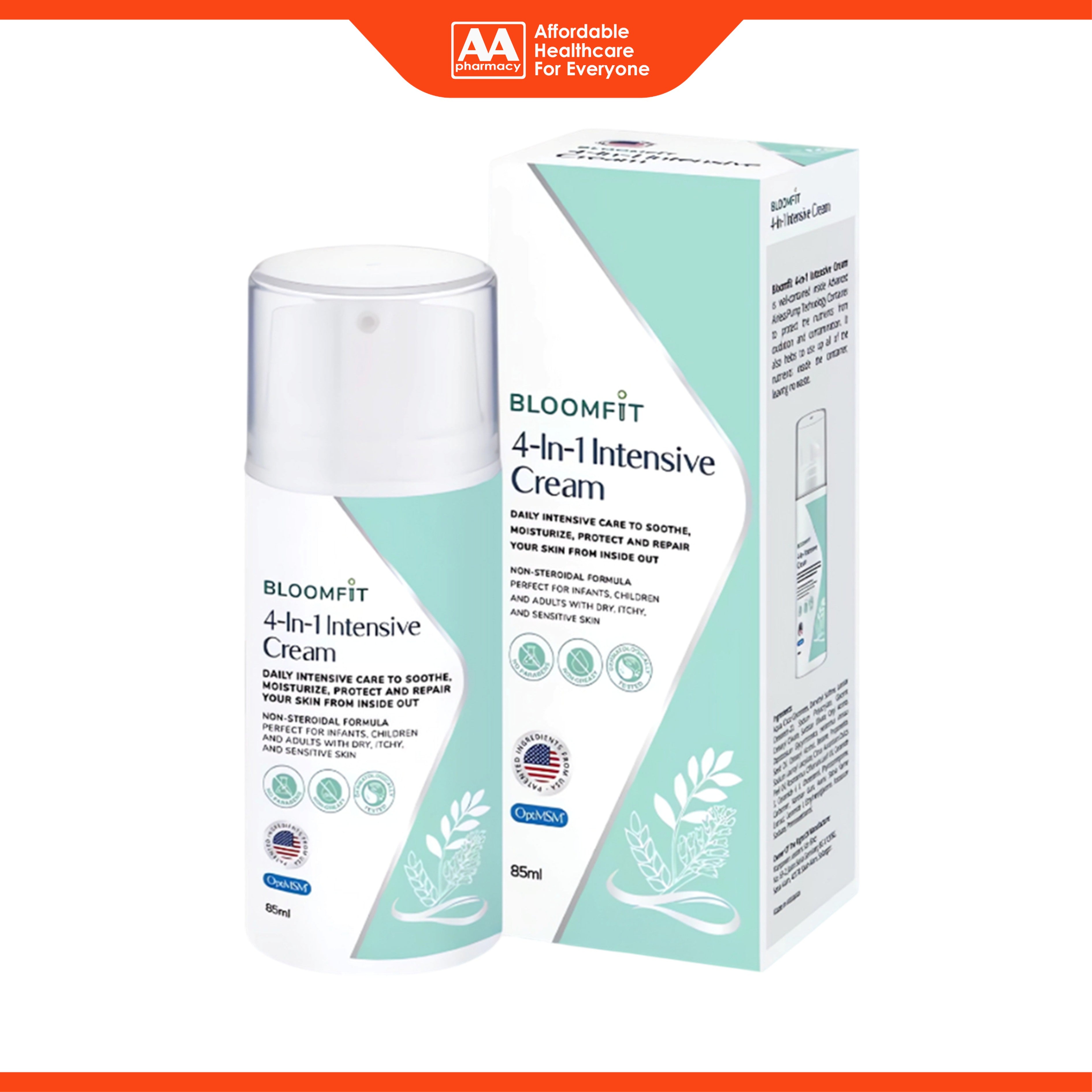 Bloomfit 4-in-1 Intensive Cream is clinically proven to soothe irritated skin, helps to restore skin moisture and skin protecting barrier, leaving your skin well-protected and smooth. It is perfect for dry, itchy and sensitive skin on the following are: face, body, lips, hands and feet. Bloomfit 4-in-1 Intensive Cream is well-contained inside Advanved Airless Pump Technology Container to protect the nutrients from oxidation and contamination. It also helps to use up all of the nutrients inside the container, leaving no waste.