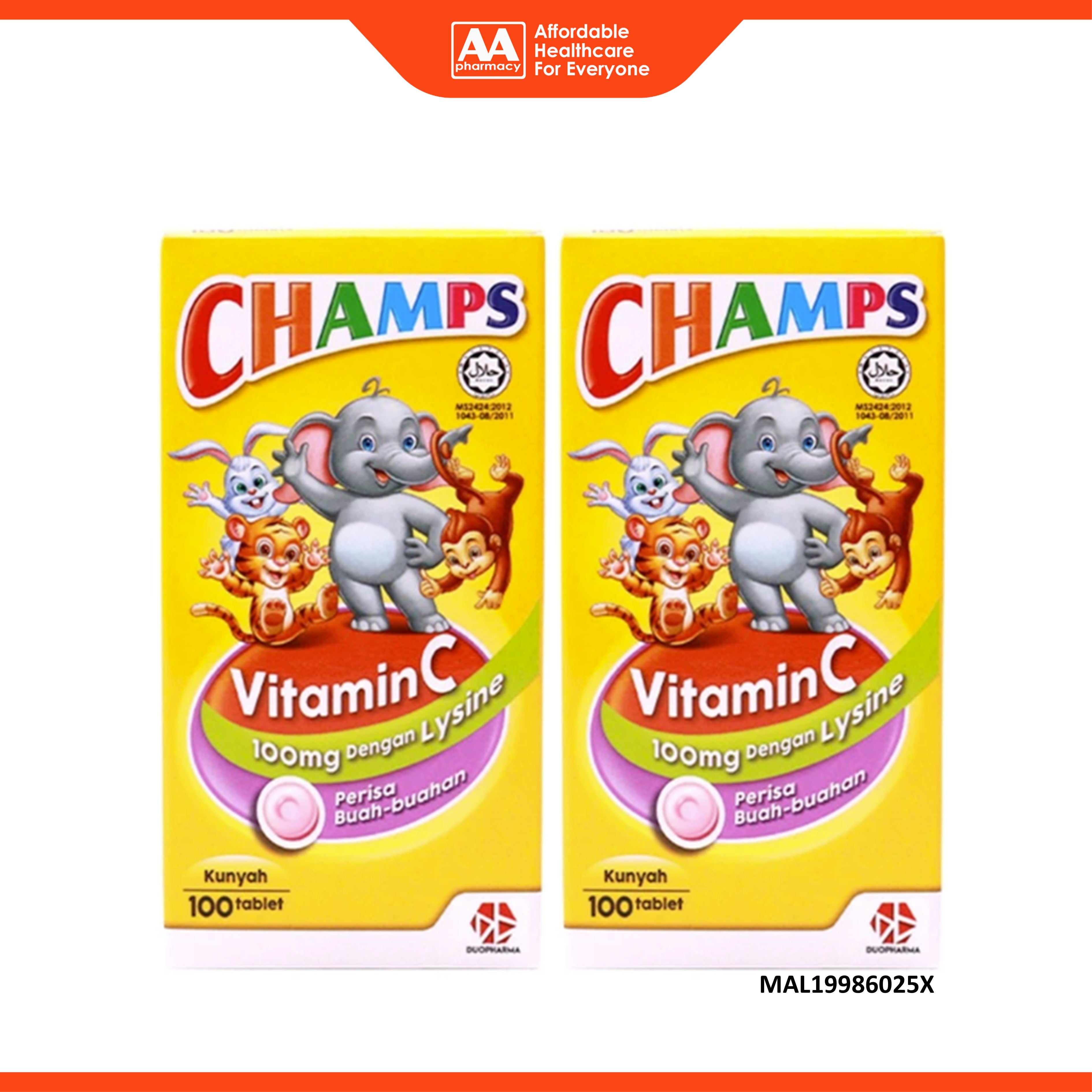 Champs Vitamin C Plus Lysine Chewable Tablet 2x100's (Fruity Flavour) [Twinpack]