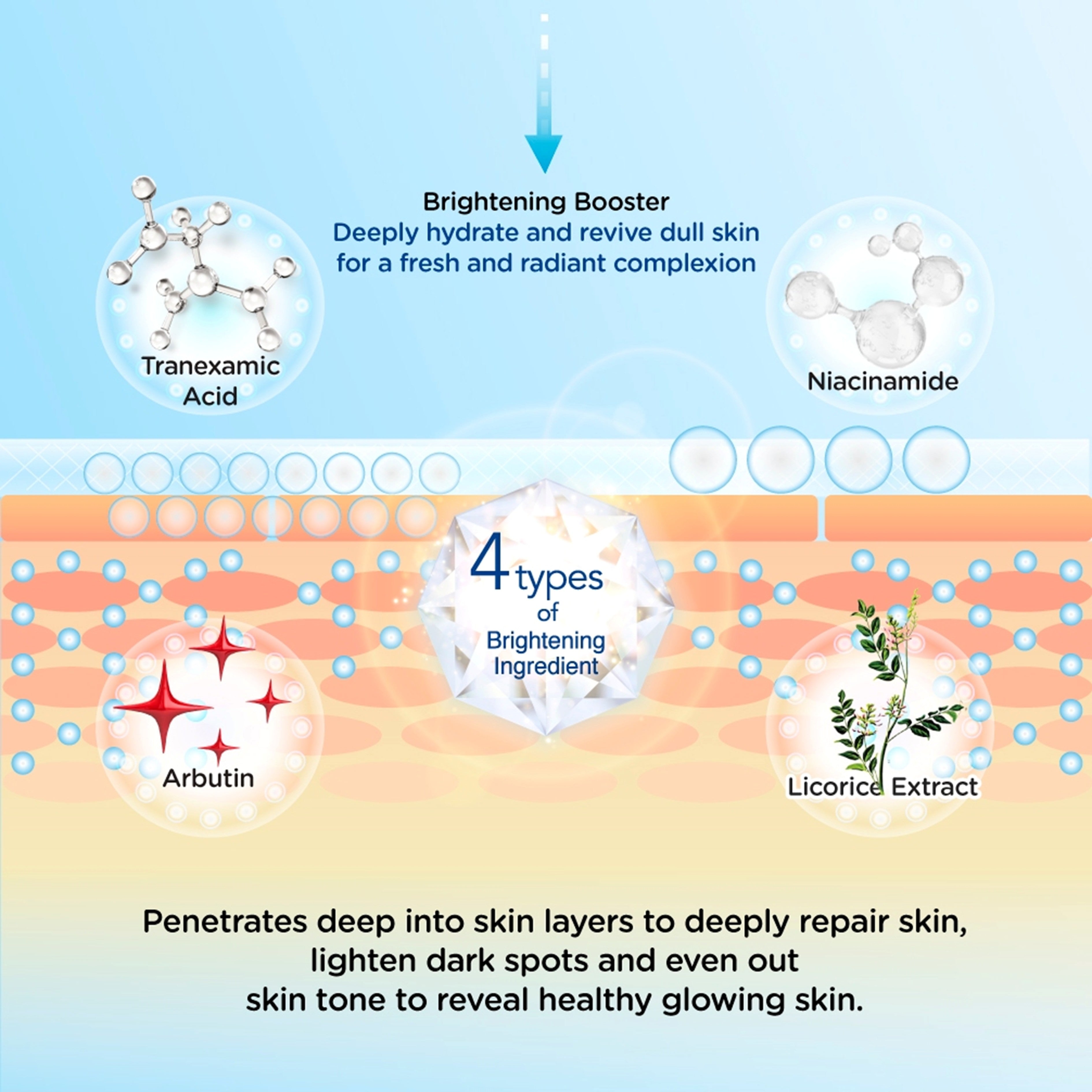 Hada Labo Deep Whitening Kotojyun Mask is a High Penetrating Serum mask infused with 4 types of highly concentrated brightening ingredients i.e. Arbutin, Tranexamic Acid, Niacinamide and Licorice Extract for intensive brightening care. The beauty serum penetrates deep into skin layers to deeply repair skin, lighten dark spots and even out skin tone to reveal healthy glowing skin.
