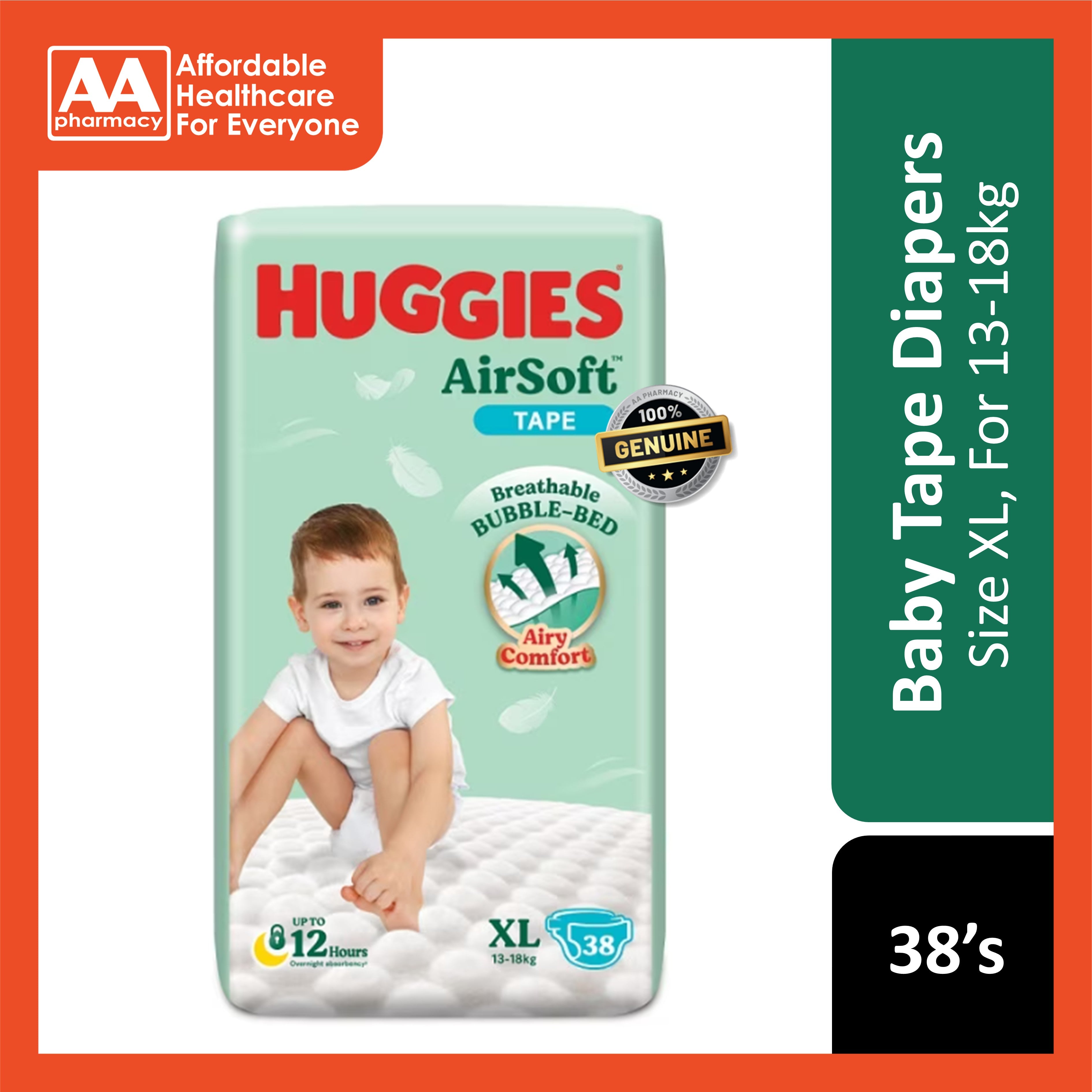 Huggies Air Soft Baby Tape Diapers Size XL 38's (For 13-18kg)