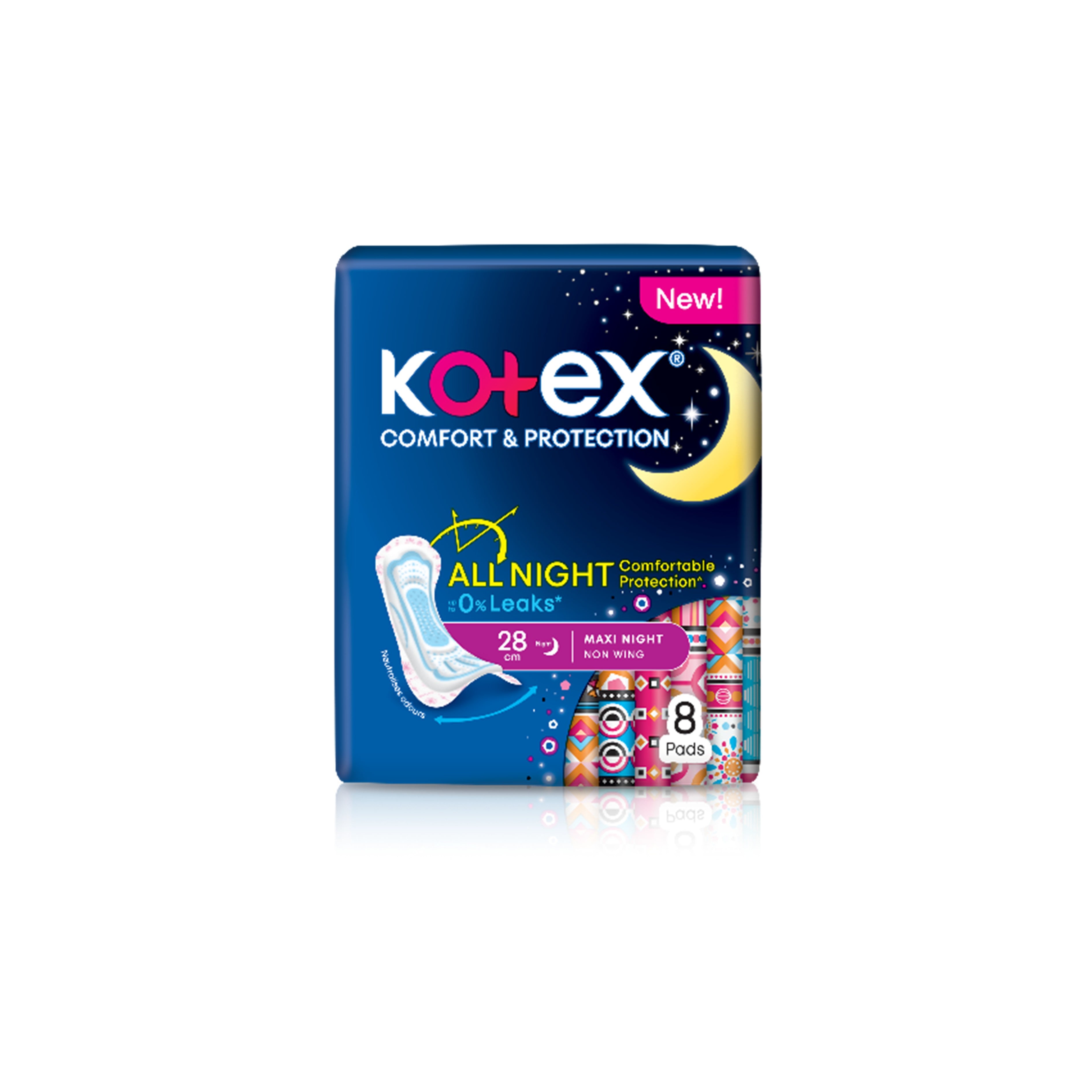 Kotex Pads (Comfort and Protection, Maxi Night Non-Wing, 28cm) 8's [Night Use]