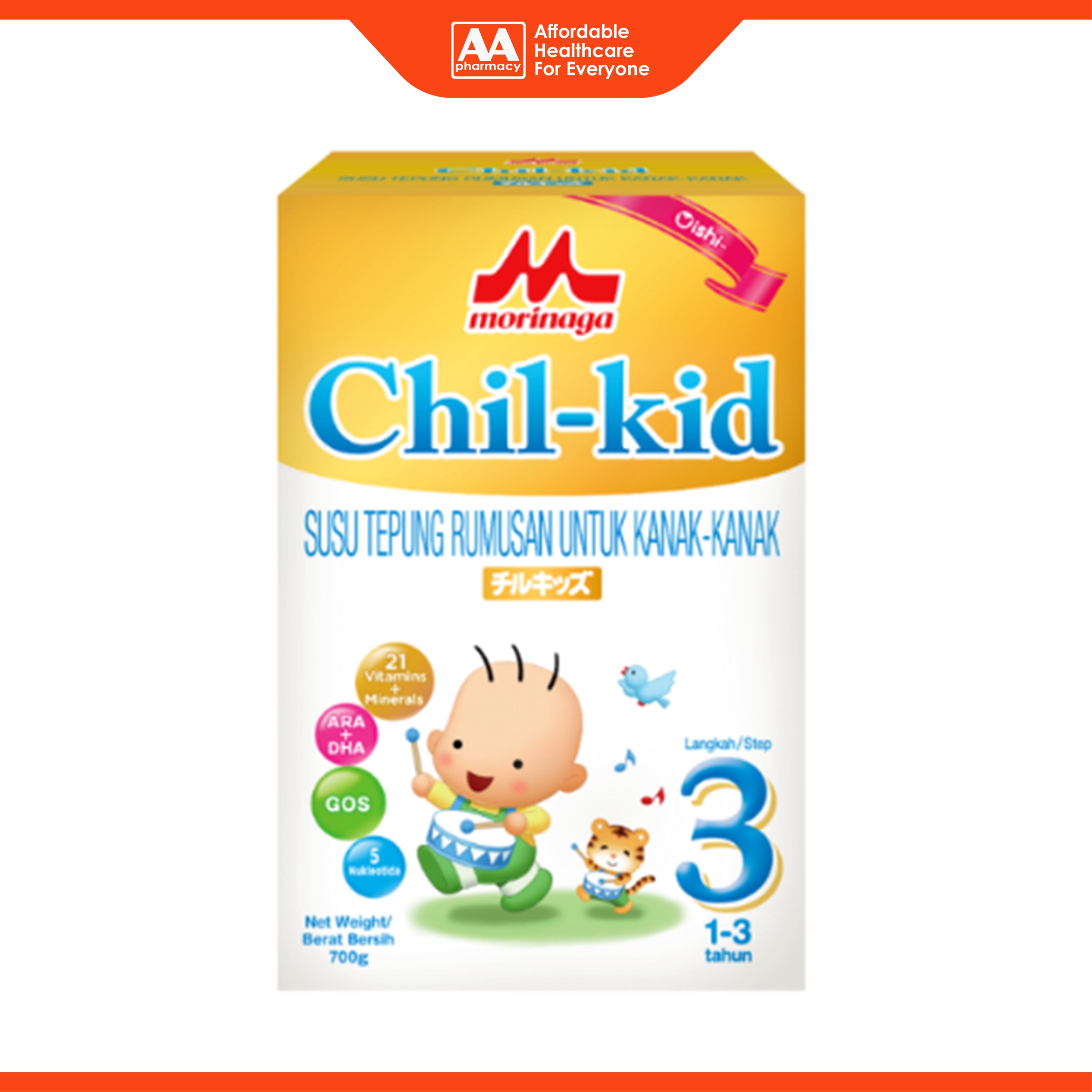 Morinaga Chil-kid is a formulated milk powder specifically designed for growing children. Morinaga Chil-kid 3 is formulated with a mild vanilla taste, containing nutrients such as ARA + DHA, Nucleotides and GOS (dietary fiber), vitamins and minerals. It provides nutritional support for the growth and development of growing children.