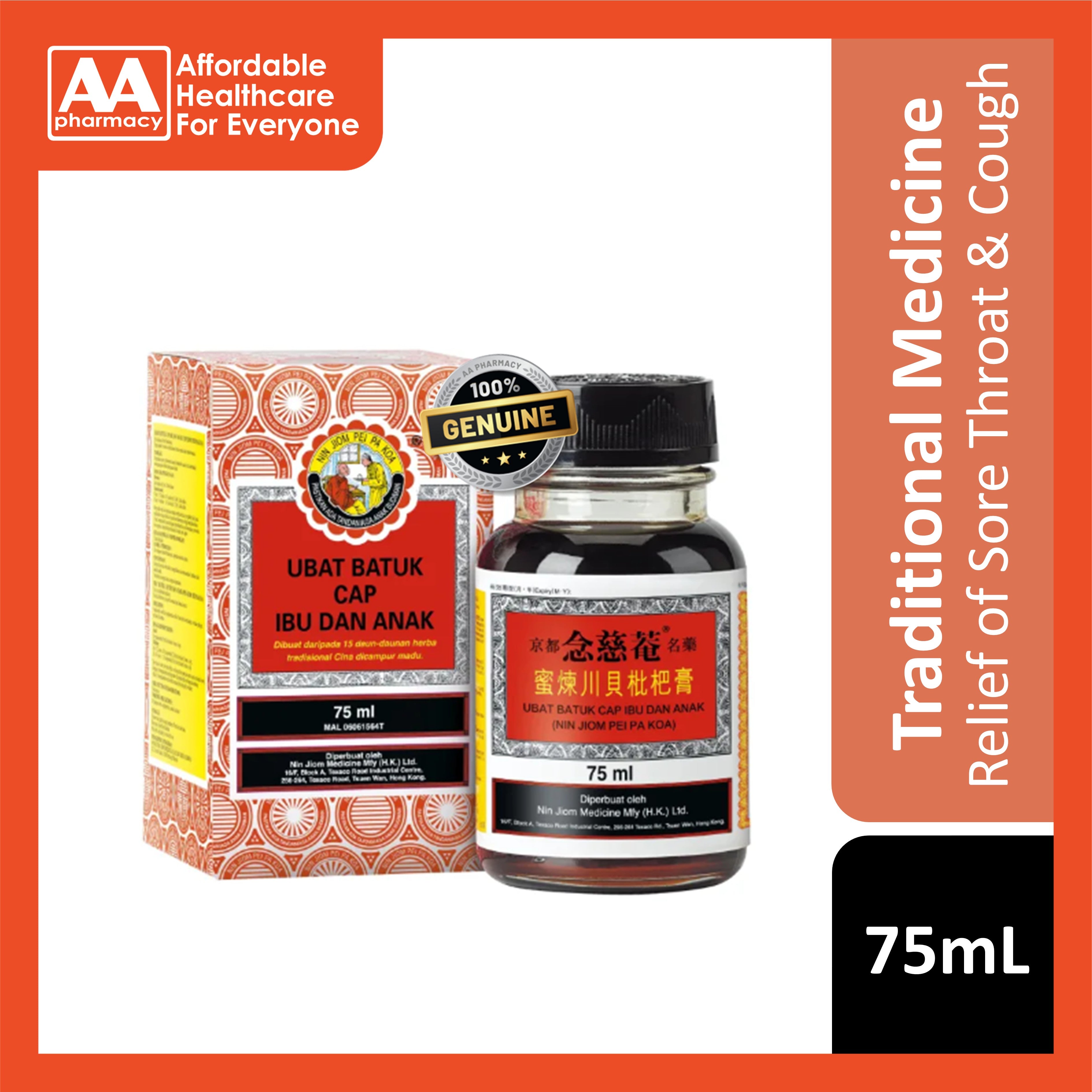 Nin Jiom Pei Pa Koa (Ubat Batuk Cap Ibu dan Anak) 75mL