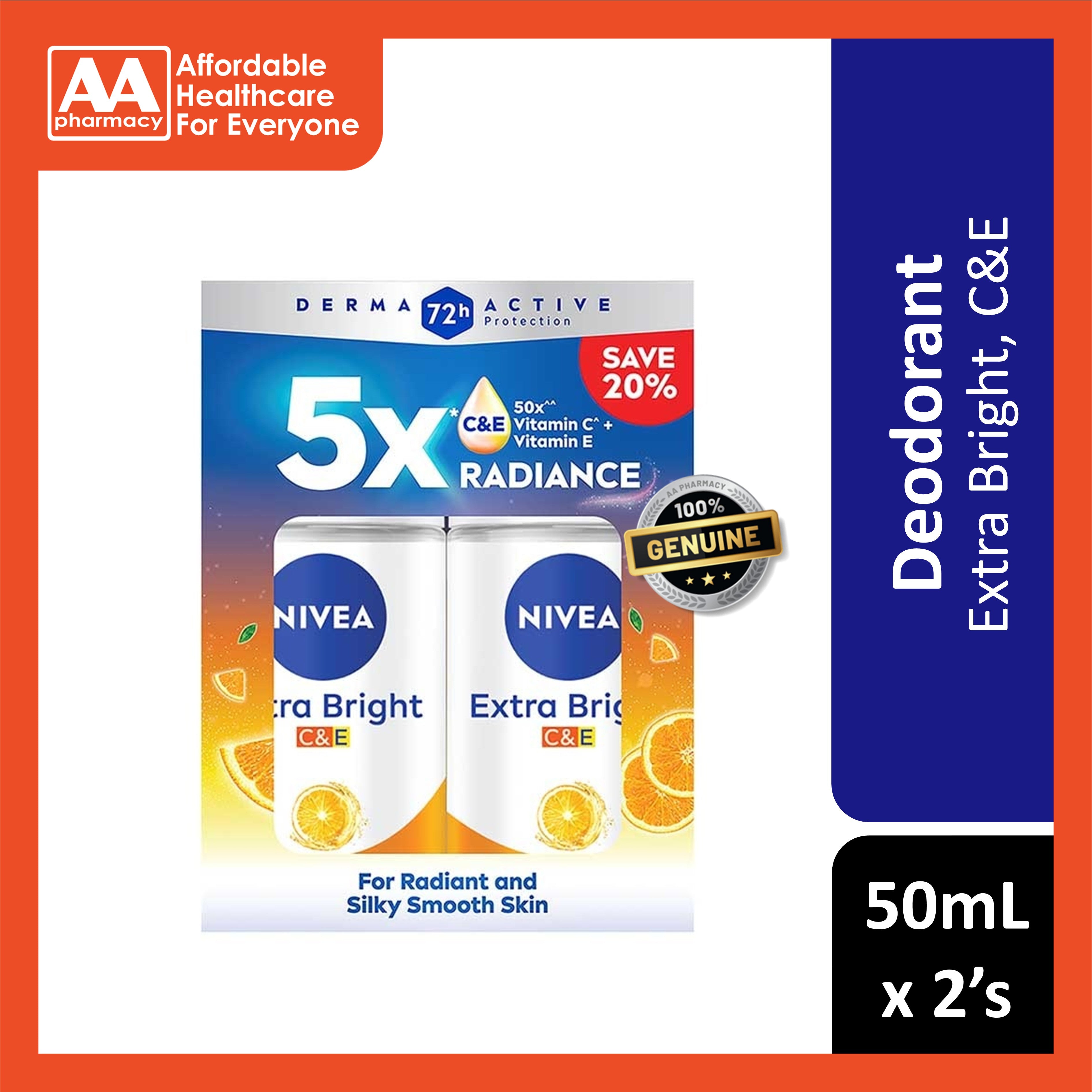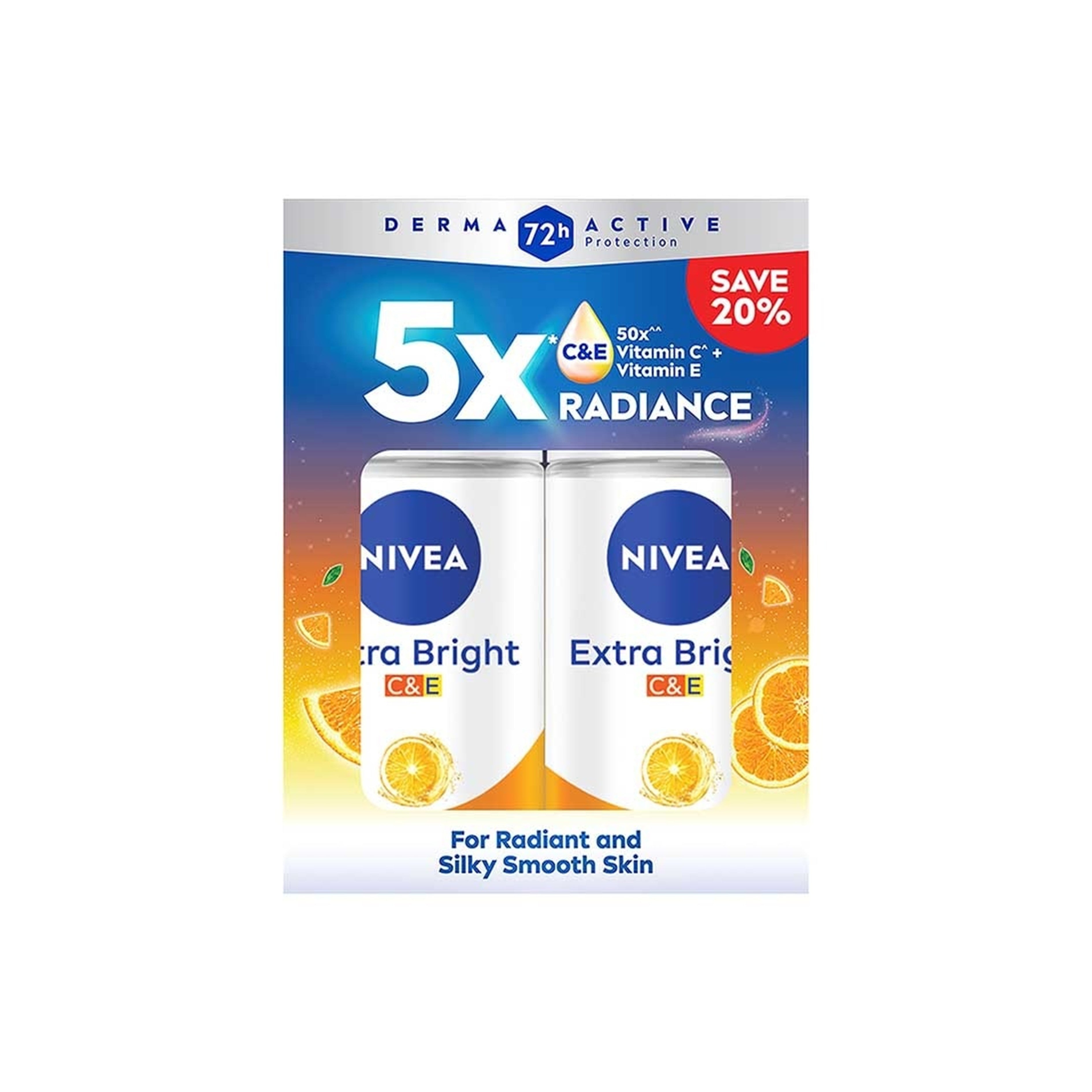 Nivea Extra Bright (C and E) 72H Anti-Perspirant Roll On 50mLx2's [Twinpack]
