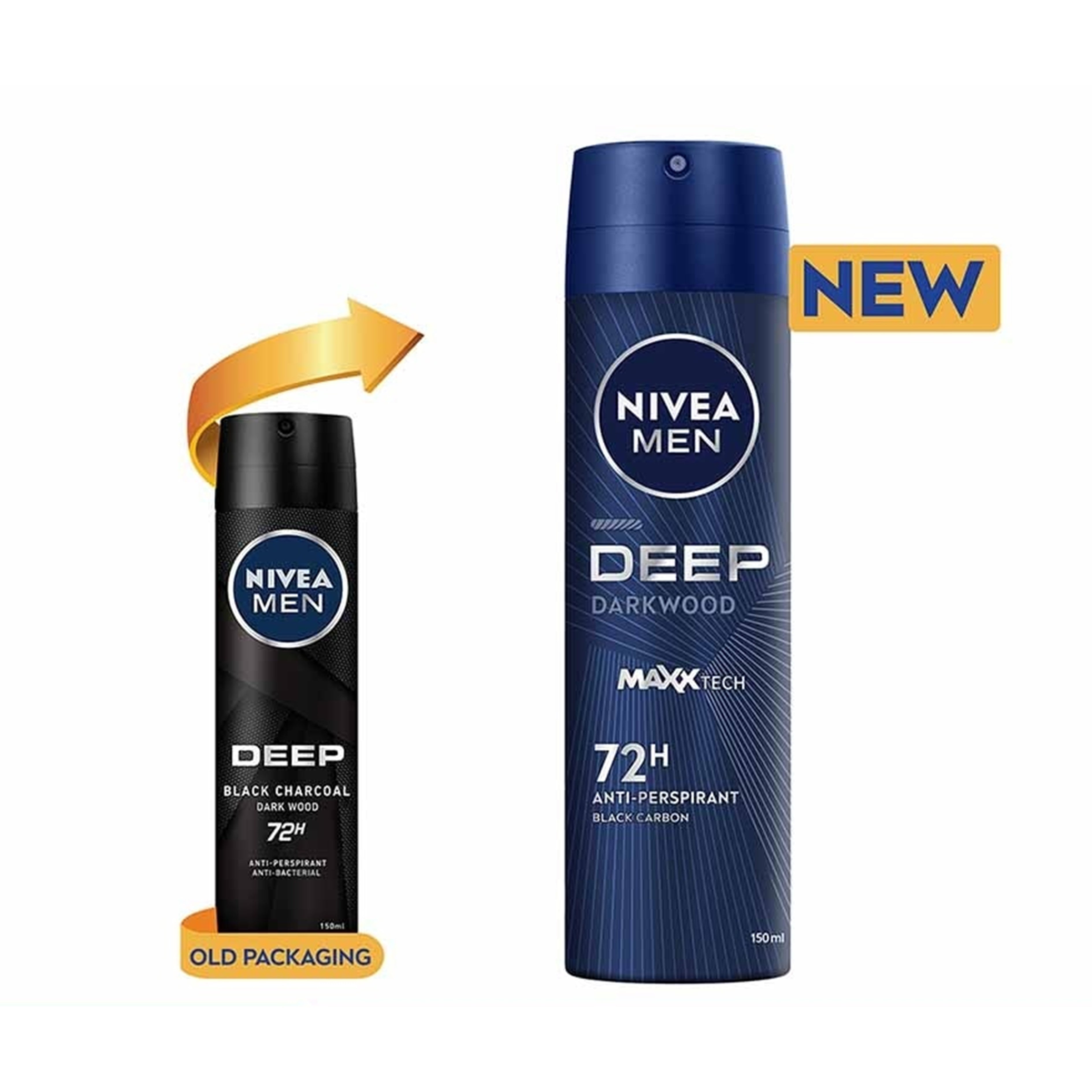 Nivea Men Deep Darkwood MaxxTech 72H Anti-Perspirant Spray 150mLx2's [Twinpack]