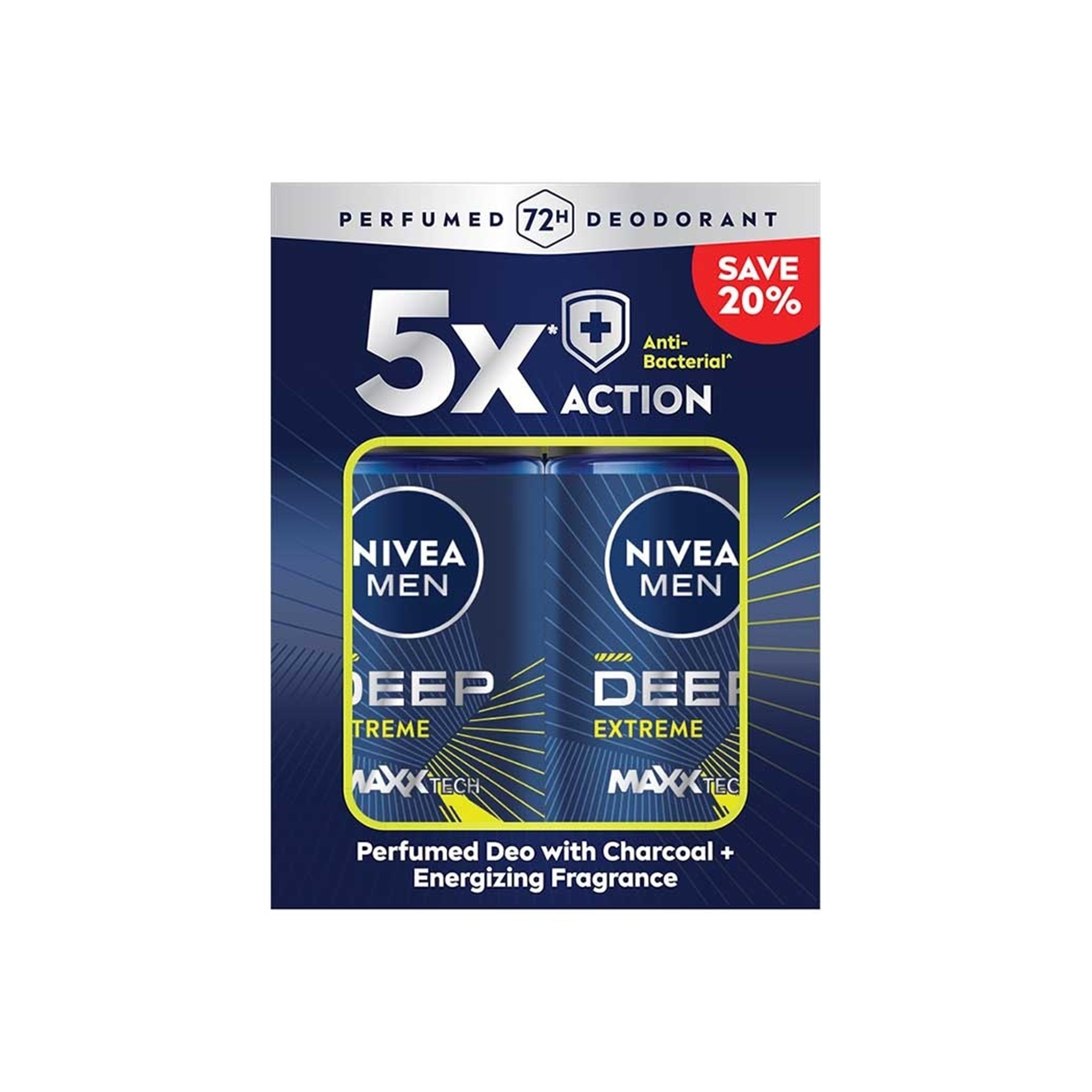 Nivea Men Deep Extreme MaxxTech 72H Anti-Perspirant Roll On 50mLx2's [Twinpack]