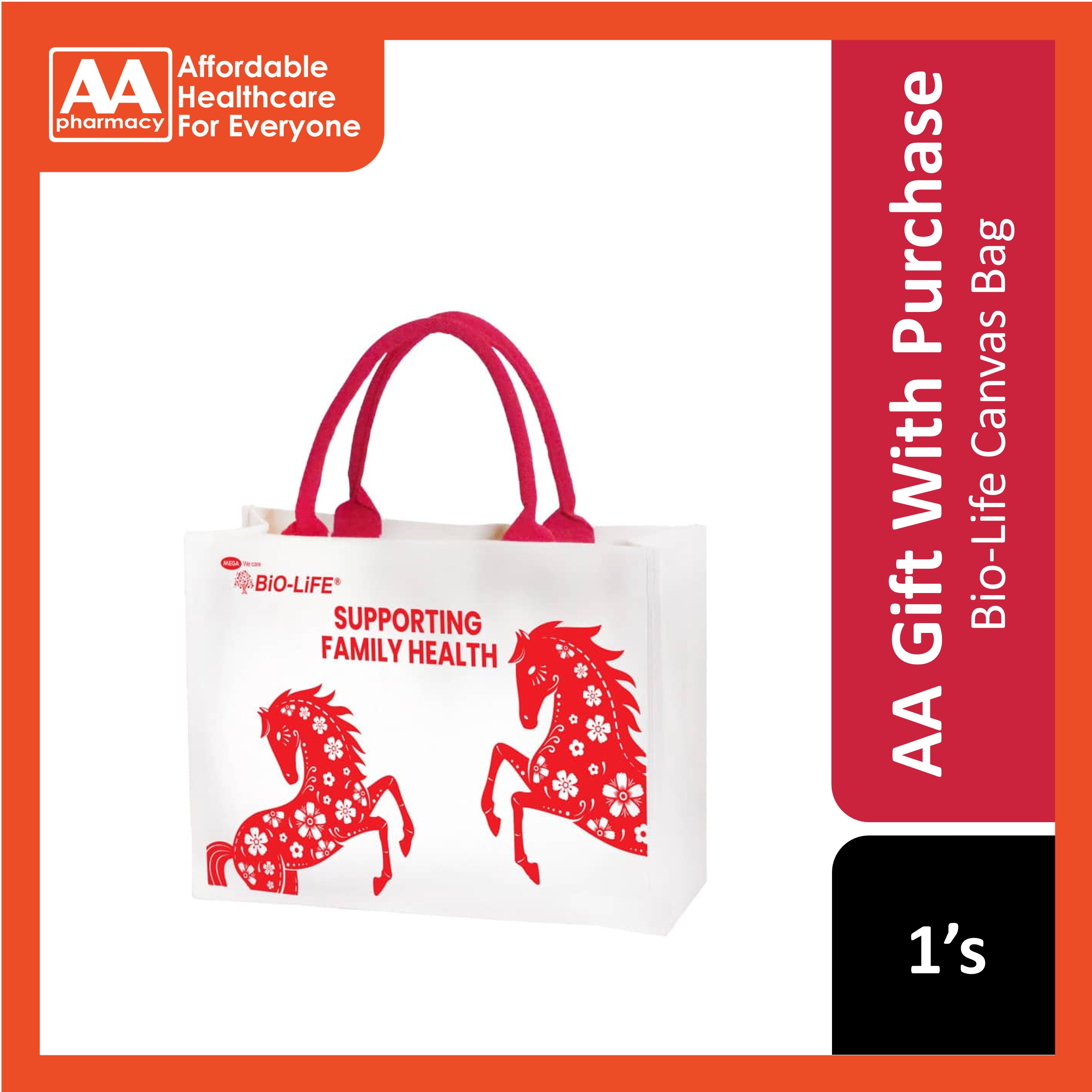 Free Bio-Life CNY Canvas Bag 1's with any purchase of Bio-Life and Mega We Care products worth RM188 and above on AA Pharmacy online stores.