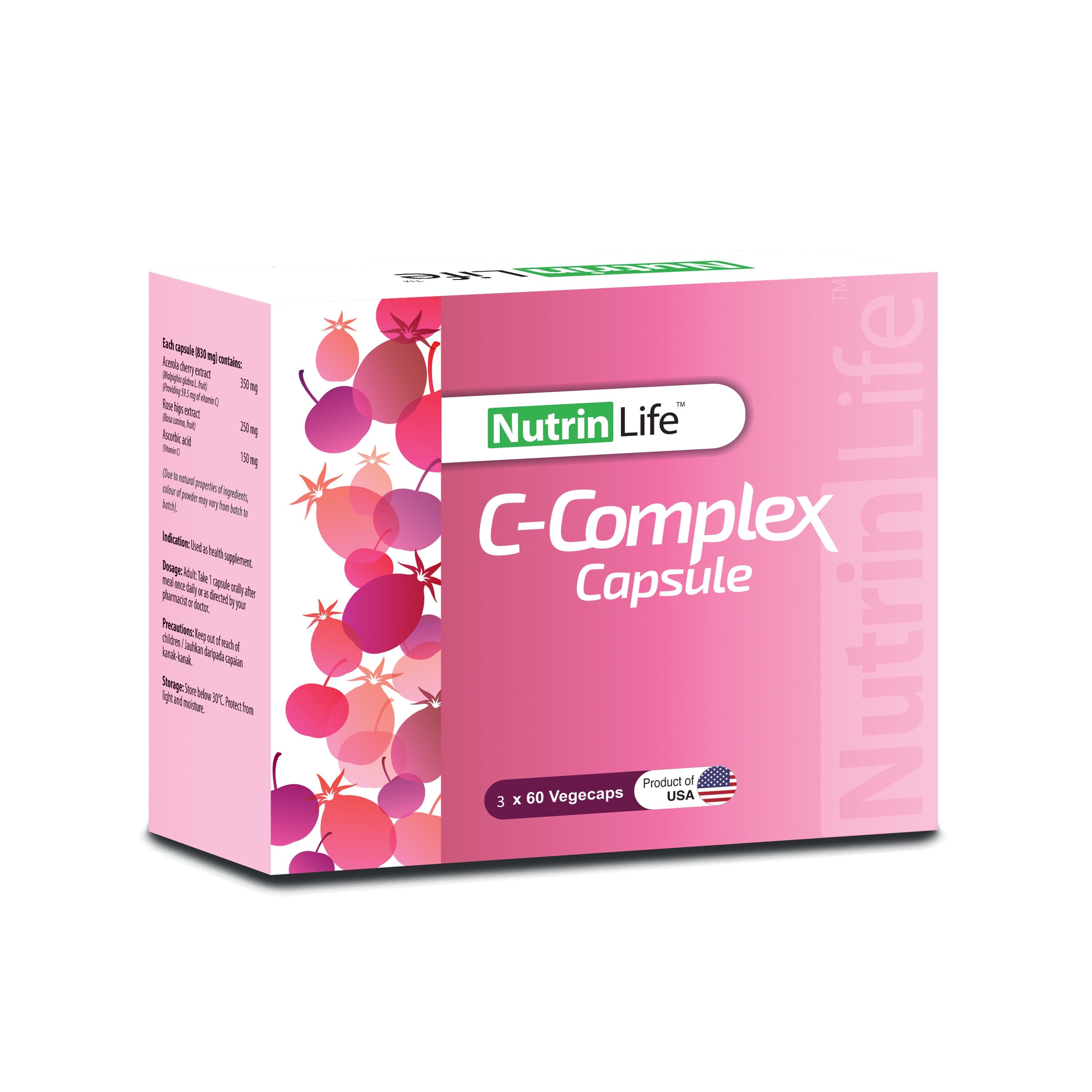 NutrinLife C-Complex contains a blend of 2 super fruits with high content of natural vitamin C-complex and highly purified vitamin C, providing  maximum possible benefits for better immune system, skin health and anti-ageing properties.