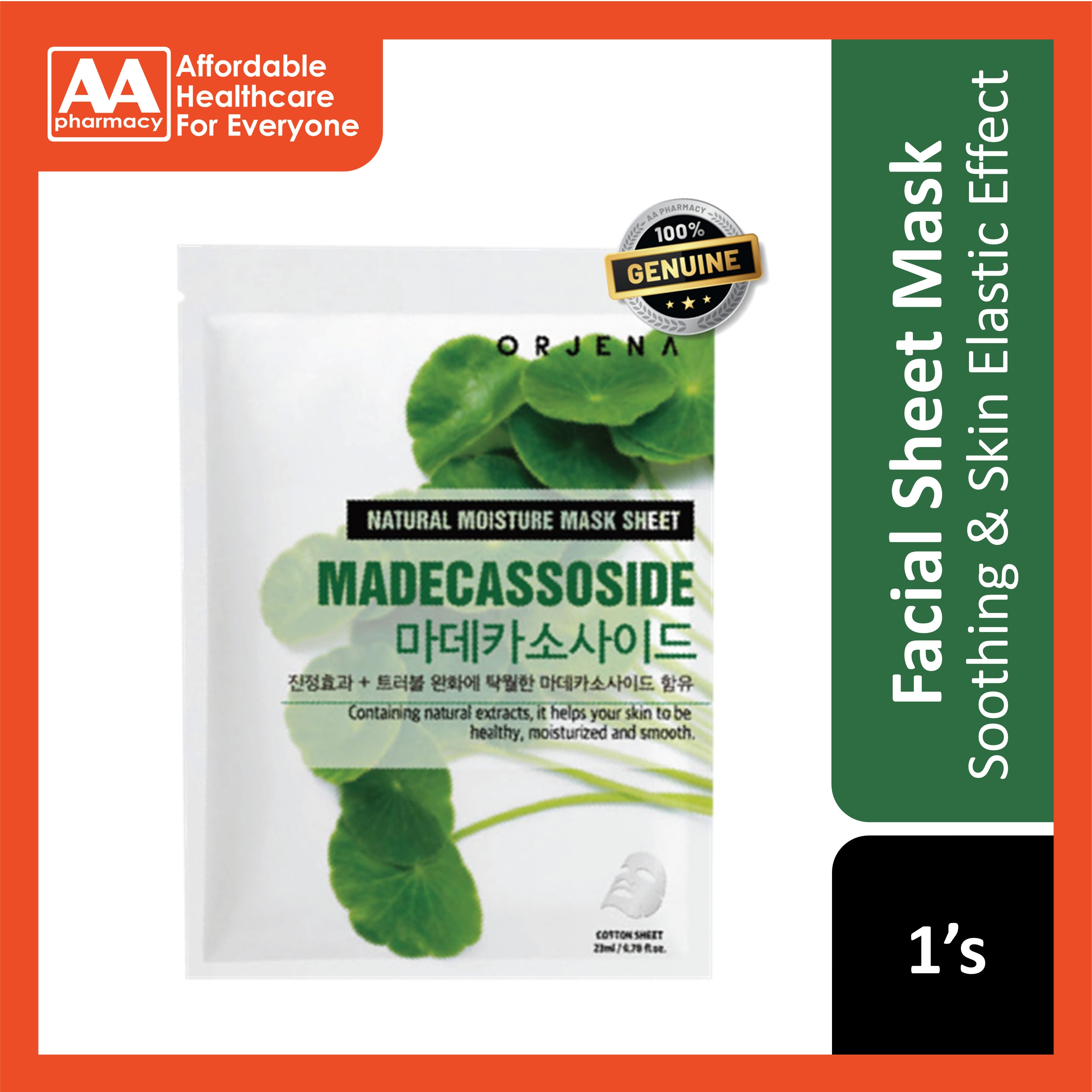 Orjena Natural Moisture Mask Sheet (Madecassoside) containing natural extracts, it helps your skin to be healthy, moisturized and smooth. This is a sheet-type mask, containing madecassoside. It helps to provide an excellent soothing effect and skin elastic effect for vibrant skin tone. This hypoallergenic mask sheet stays attached to the face along with the natural skin texture, and will provide a soothing comfort for your skin.