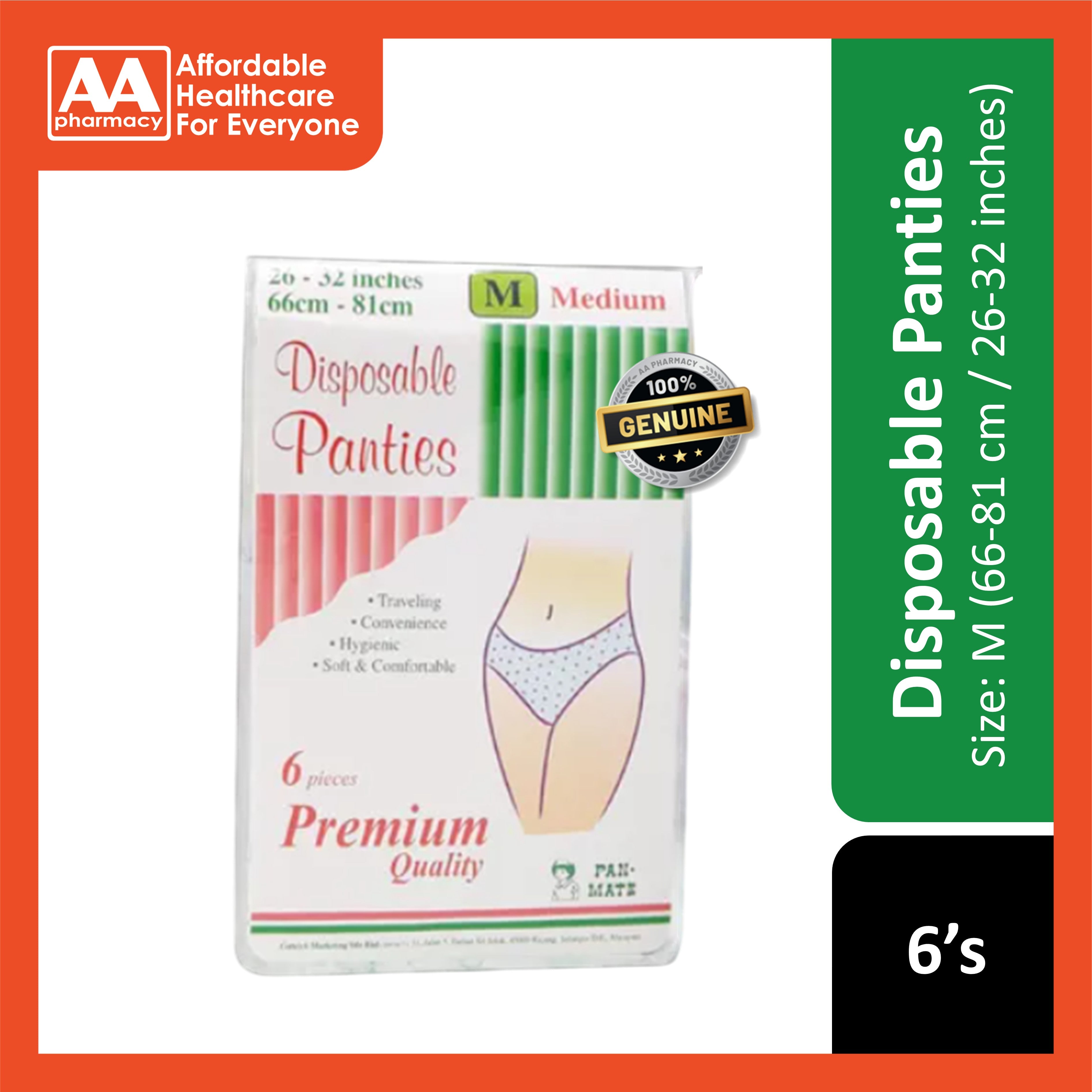 Pan-Mate Premium Quality Disposable Panties Size M 6's (66-81cm / 26-32 inches)