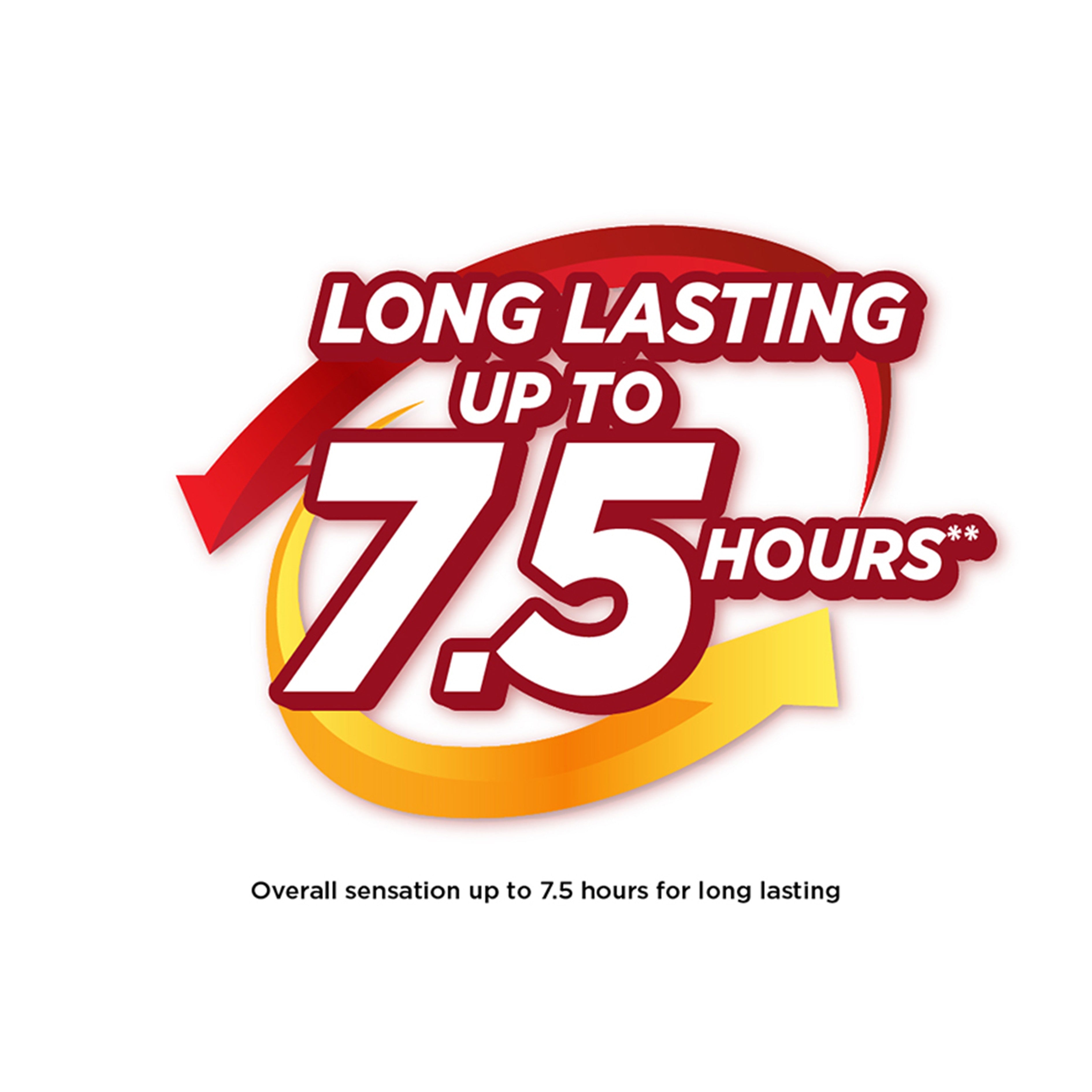 * Overall sensation felt or perceived after 80 seconds for fast acting and overall sensation up to 7.5 hours for long lasting.