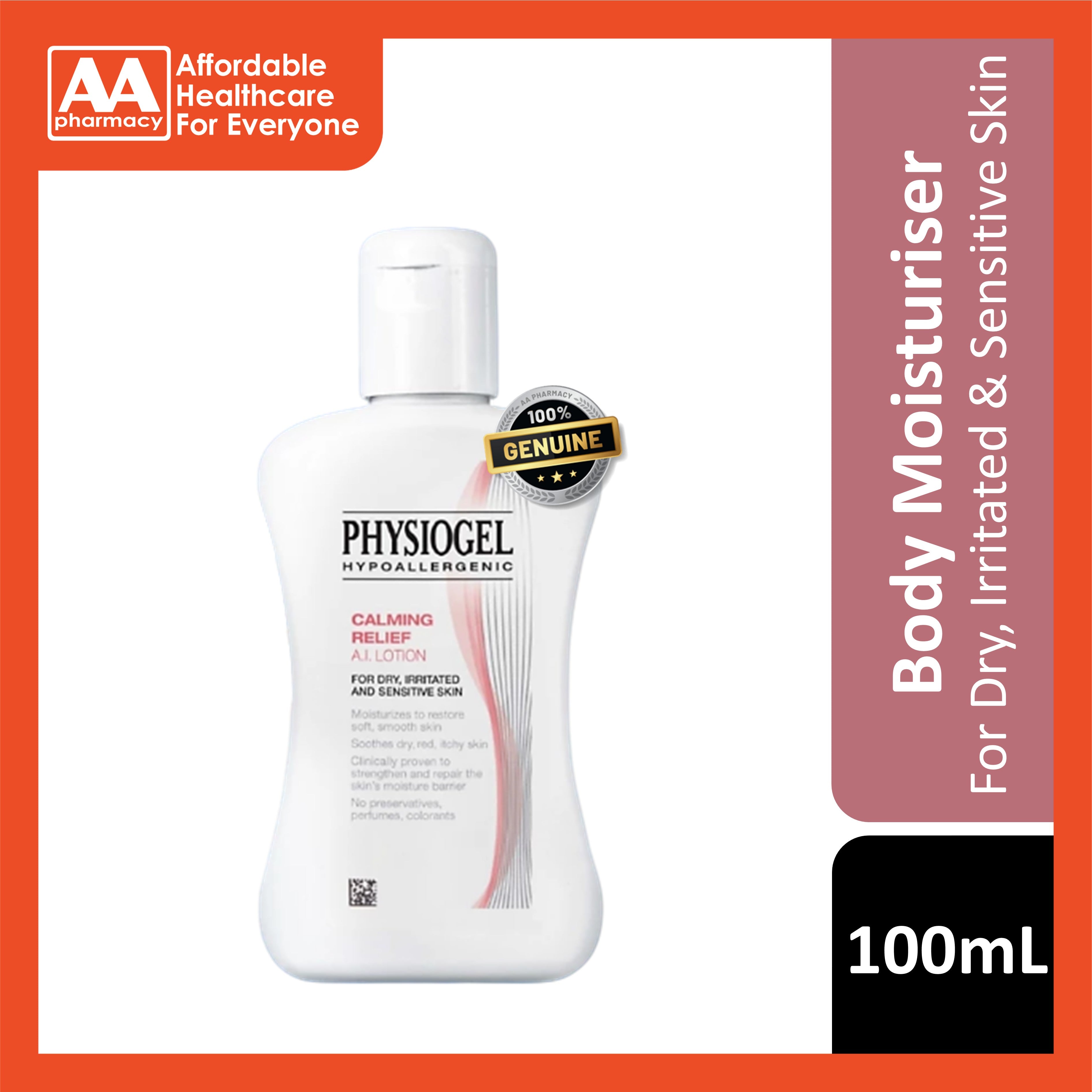 Physiogel Hypoallergenic Calming Relief A.I. Body Lotion is a daily use lotion for dry, sensitive skin that can be itchy and red. Also suitable for use in babies and children. This lightweight, fast-absorbing lotion spreads easily and is appropriate for all over body use.