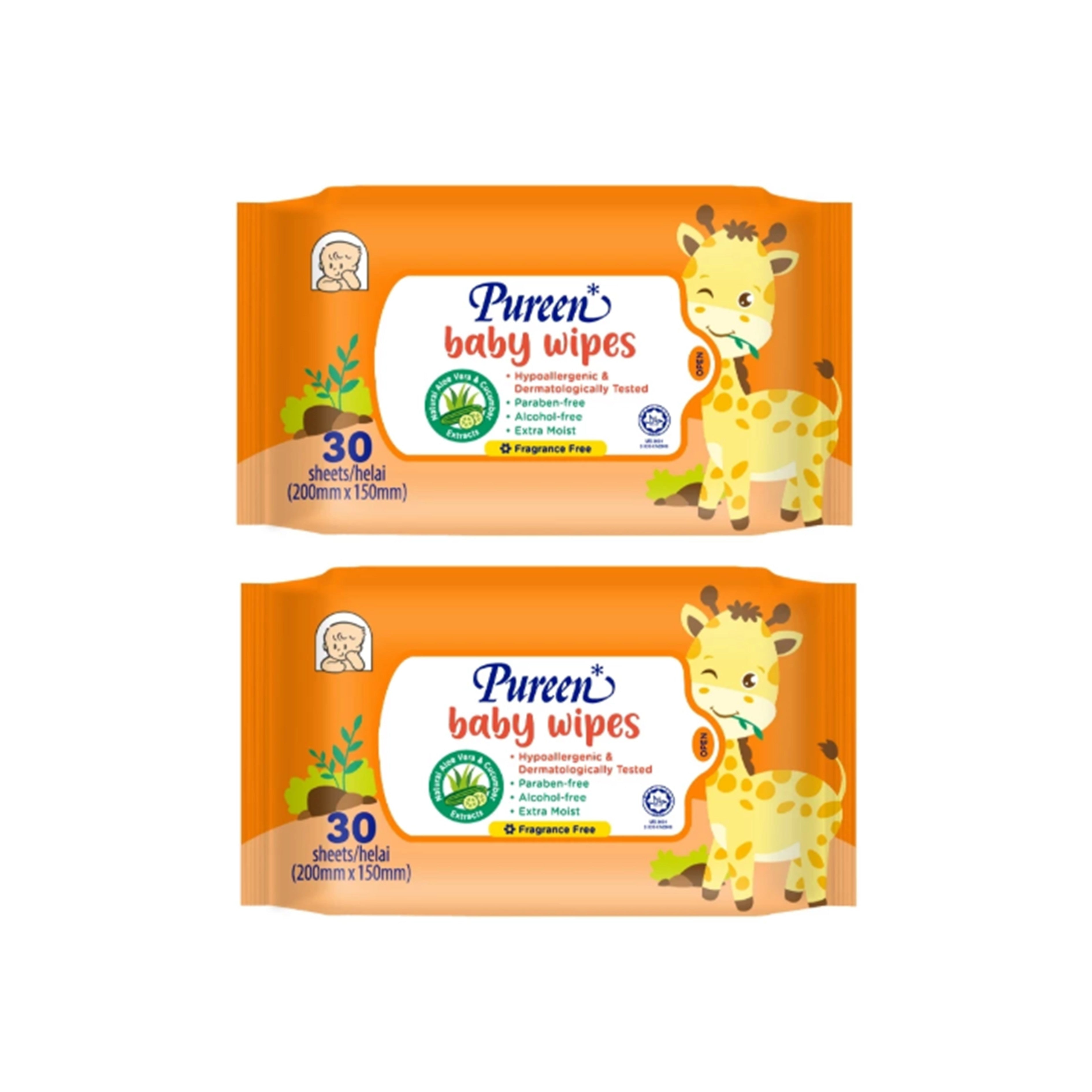 Pureen Baby Wipes (Fragrance-Free) 2x30's [Value Pack]