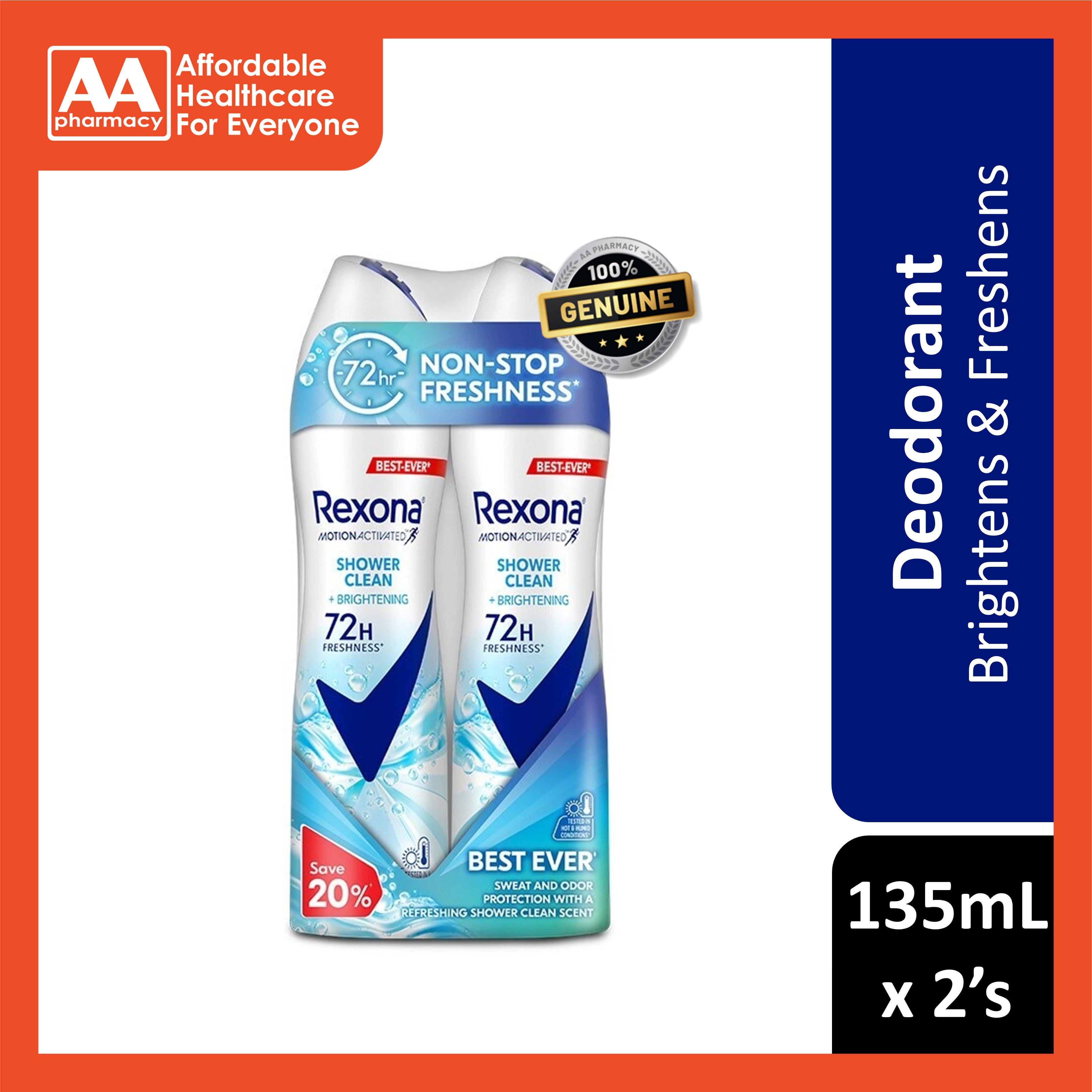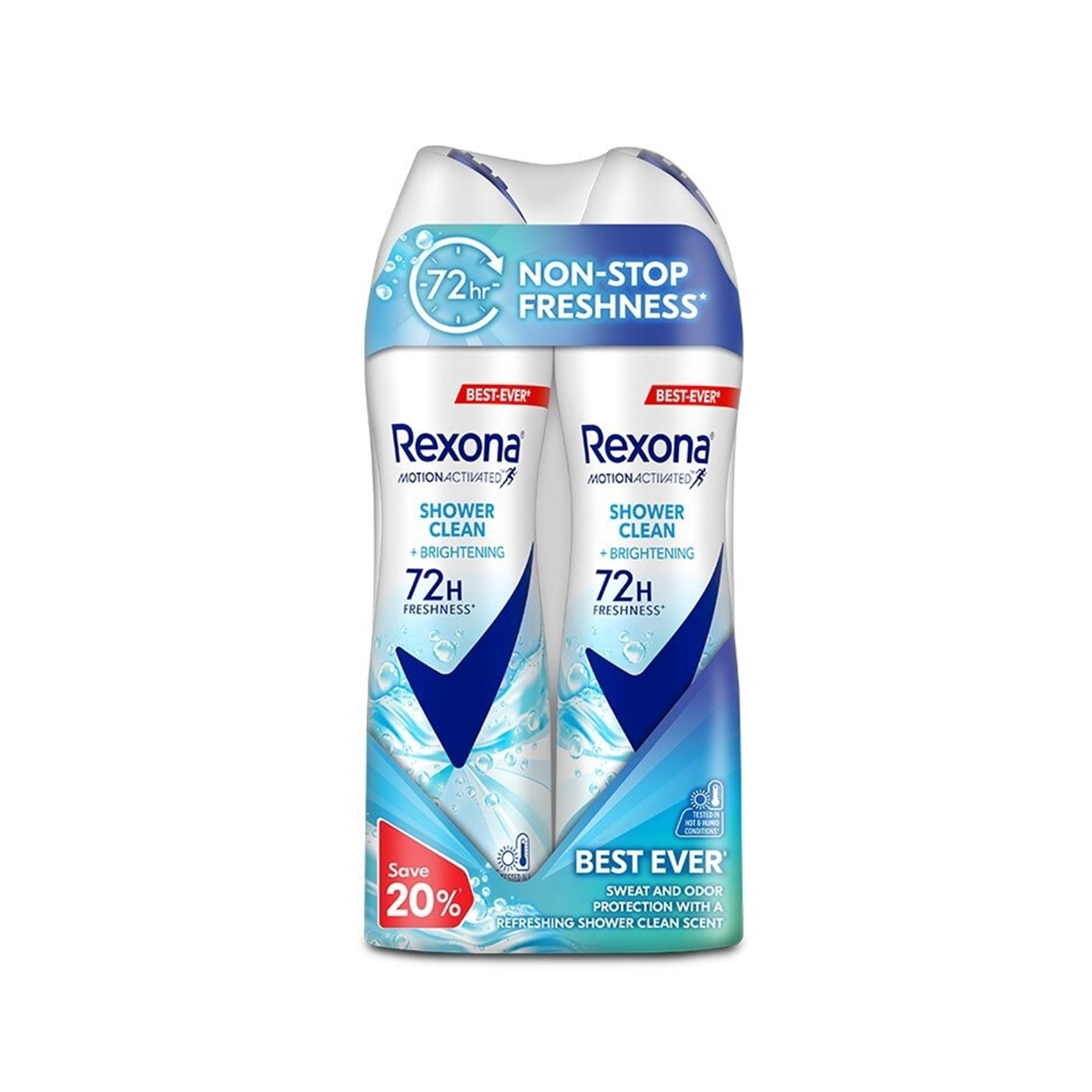 Rexona Motion Activated Antiperspirant Spray (Shower Clean + Brightening) 135mLx2's [Twinpack]