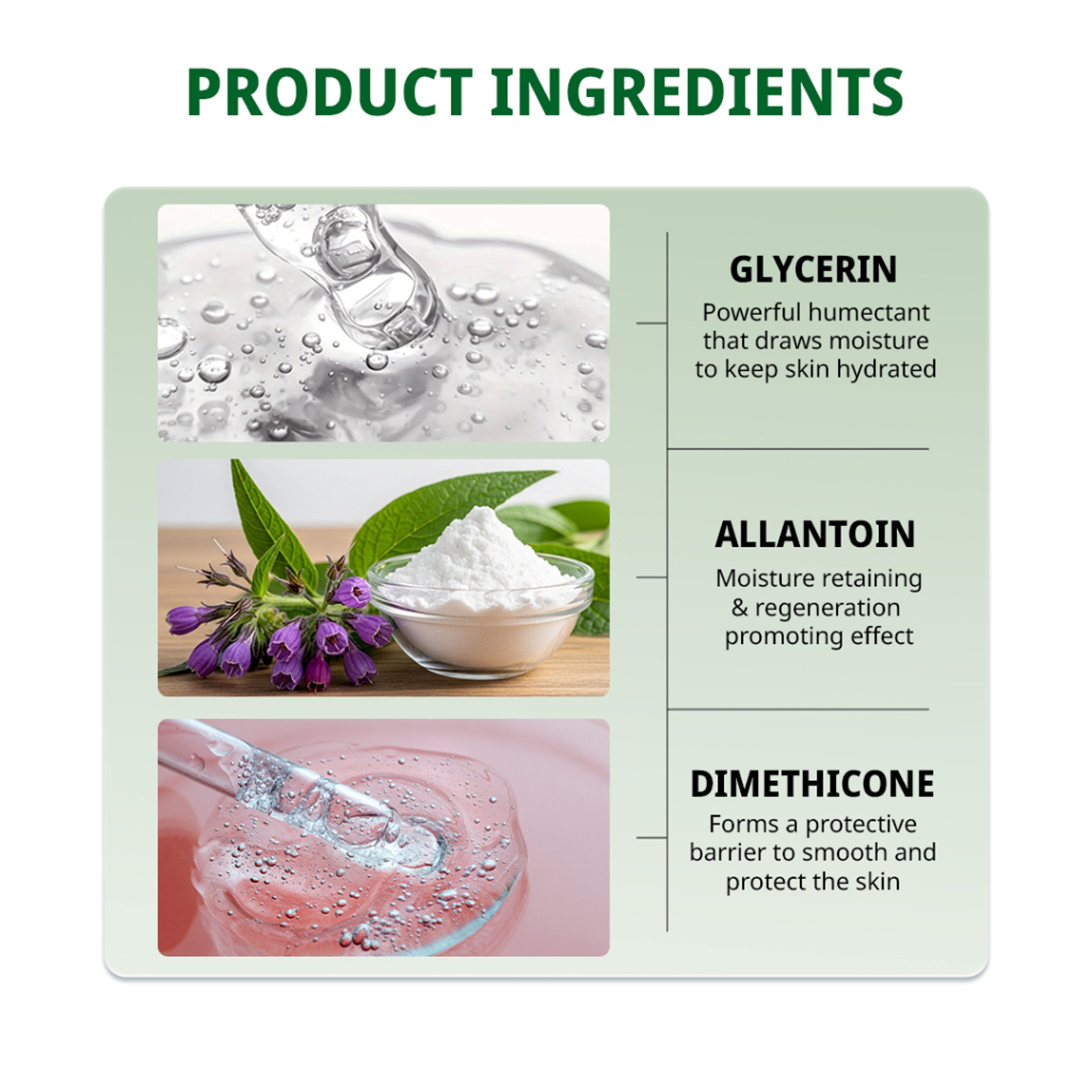 Aqua, Glycerin, Cetearyl Alcohol, Hydrogenated Starch Hydrolysate, Hexyldecanol, Hexyldecyl Laurate, Phenoxyethanol, Sodium Benzoate, Sodium Cetearyl Sulfate, Parfum, Allantoin, Dimethicone, Xanthan Gum, Alcohol, Citric Acid, Chamomilla Recutita Flower Extract, Acetyl Cedrene, Sodium Hydroxide, Sodium Acetate, Tetramethyl Acetyloctahydronaphthalenes, Disodium Phosphate, Sodium Ascorbate, Potassium Phosphate.