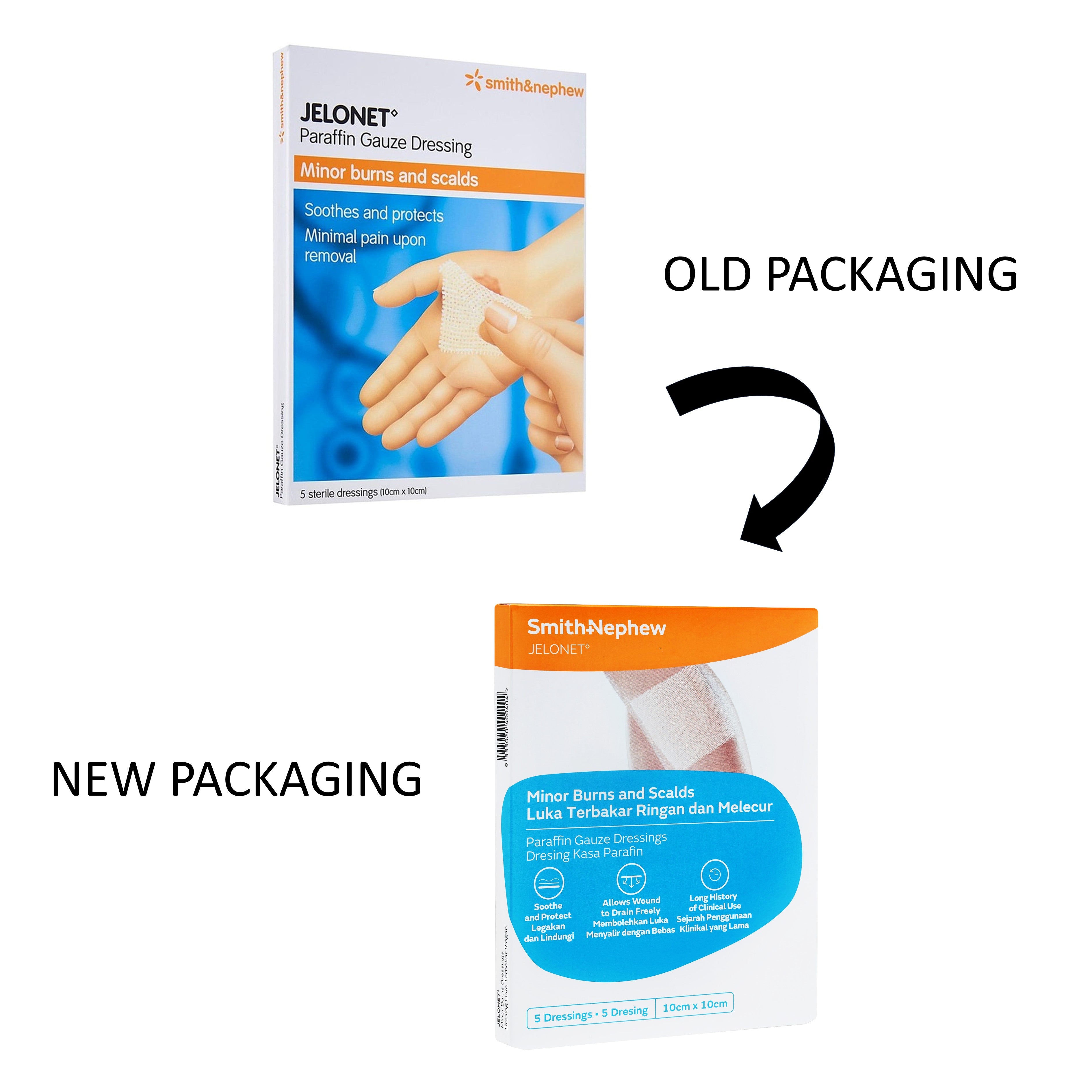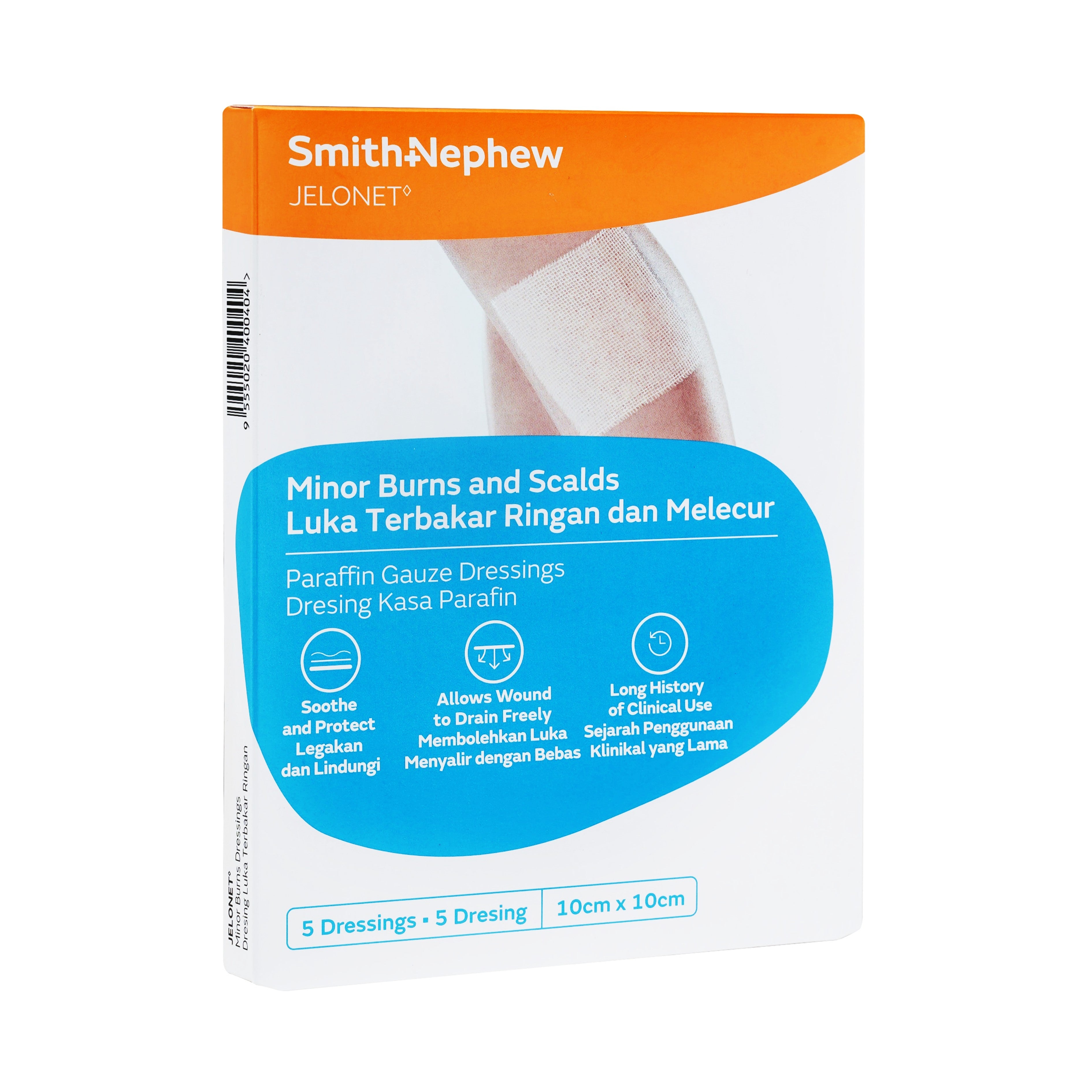 Jelonet Minor Burn Dressings are designed to soothe and protect the injury. Jelonet Dressings are paraffin tulle gras dressings made from open weave gauze coated with soft paraffin. Jelonet acts as a wound contact layer. It is placed between the wound and a secondary dressing, and its open weave structure allows exudate to pass into an absorbent secondary dressing e.g. Melolin.
