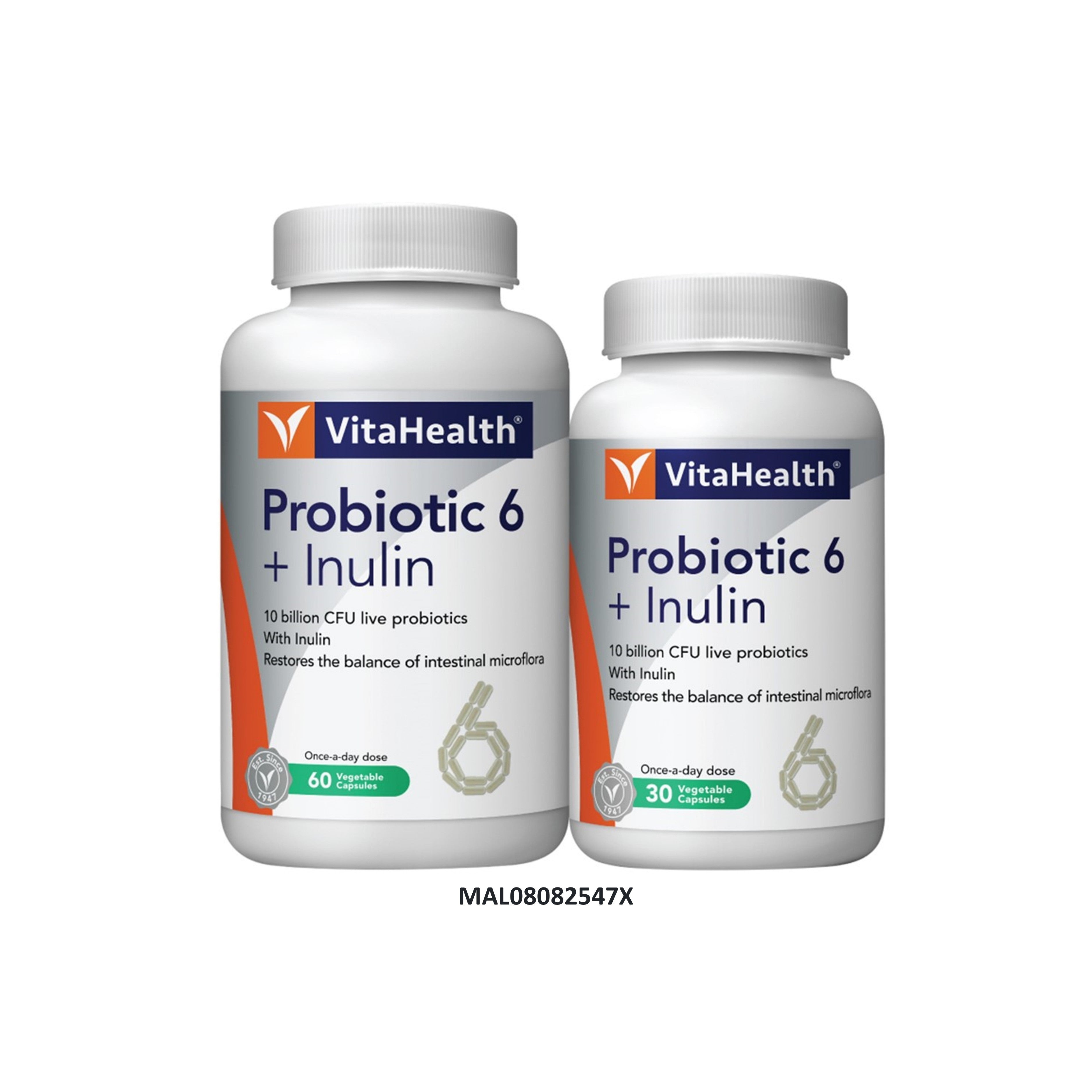 VitaHealth Probiotic 6 + Inulin Vegetable Capsule 60's + 30's