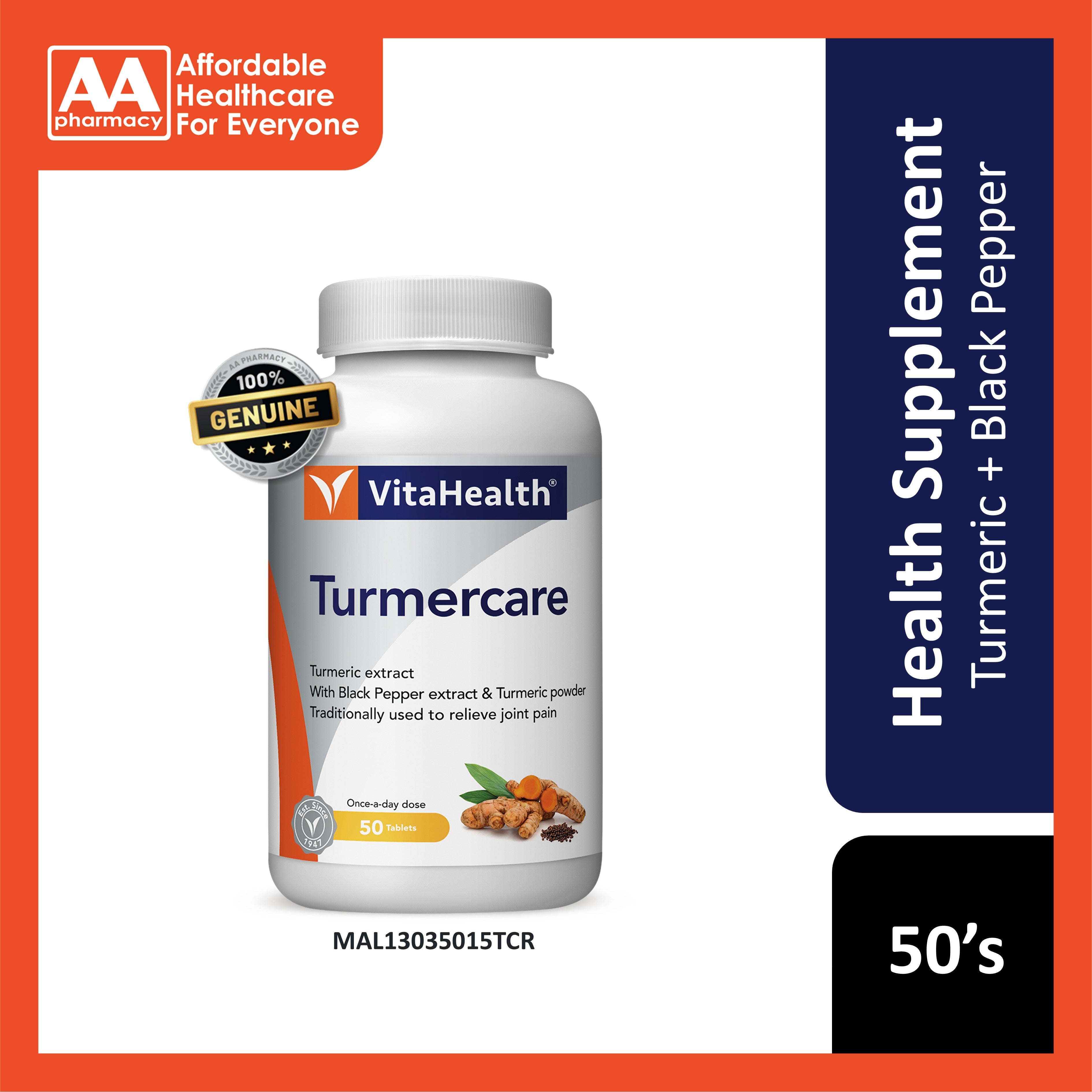 VitaHealth Turmercare is formulated with Curcumin C3 Complex turmeric extract, turmeric powder and BioPerine black pepper extract; traditionally used to relieve joint pain. Curcumin belongs to the family of curcuminoid compounds. It is a naturally-occuring yellow pigment that gives turmeric its unique yellow colour. BioPerine provides standardised piperine extract from the fruit of black pepper.